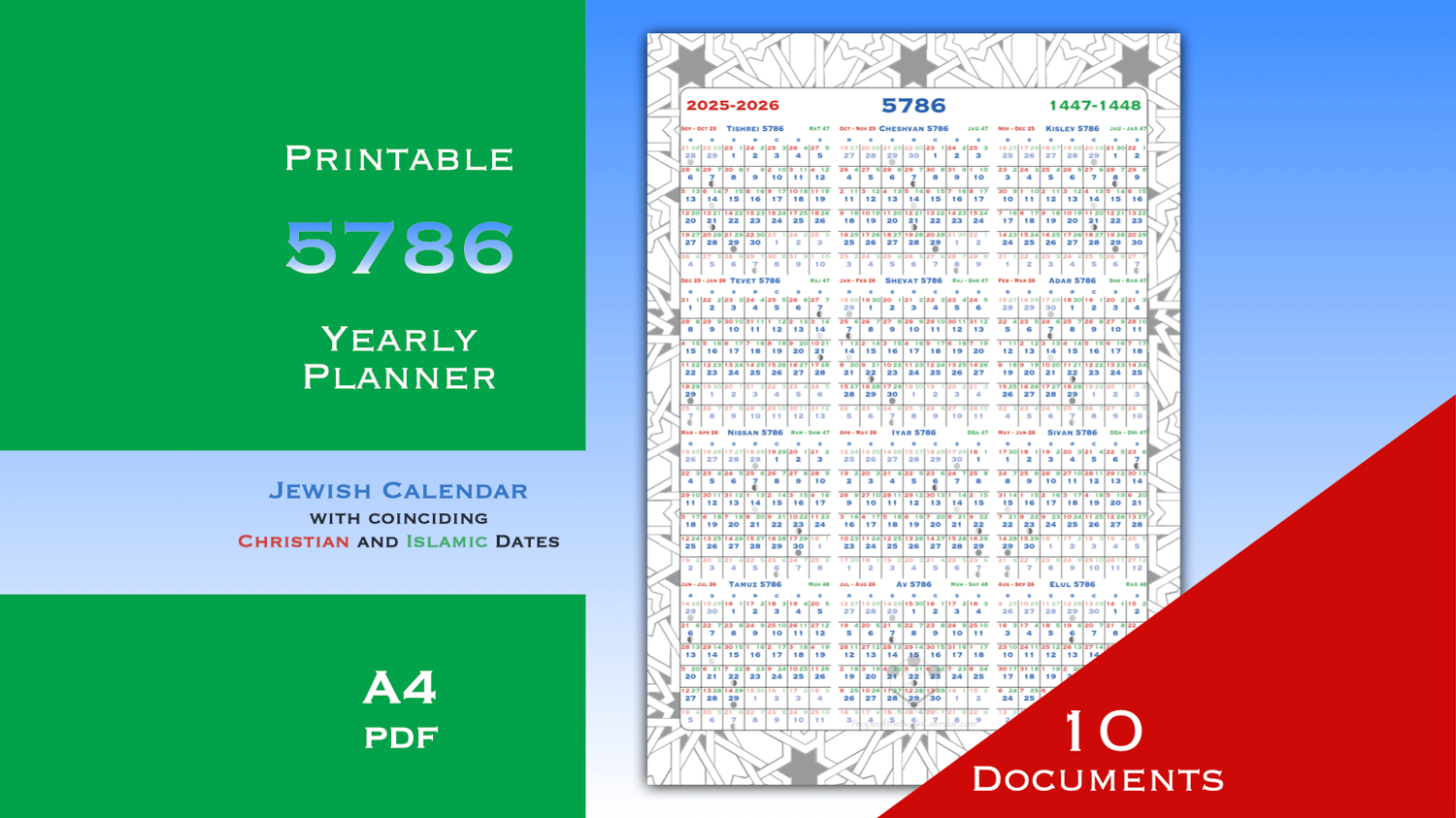 The Christian (Gregorian) calendar is used world-wide as the universal calendar for business, much like English is a universal business language. The Jewish and Islamic calendars are still in use today by members of those faiths and in certain countries. As a result, calendars combining one of these with the Gregorian calendar are readily available, but this calendar combines all three so we can all use the same one.