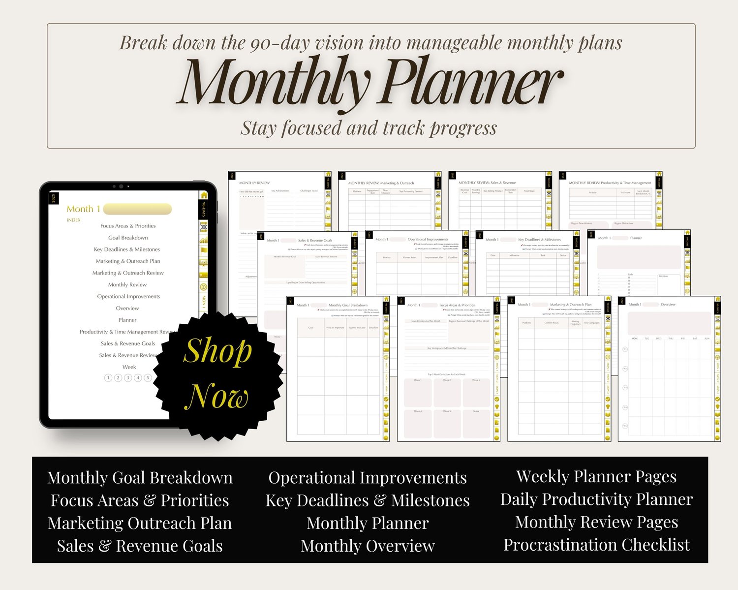 Undated 90-Day Digital Business Goal Planner | Sunday Start