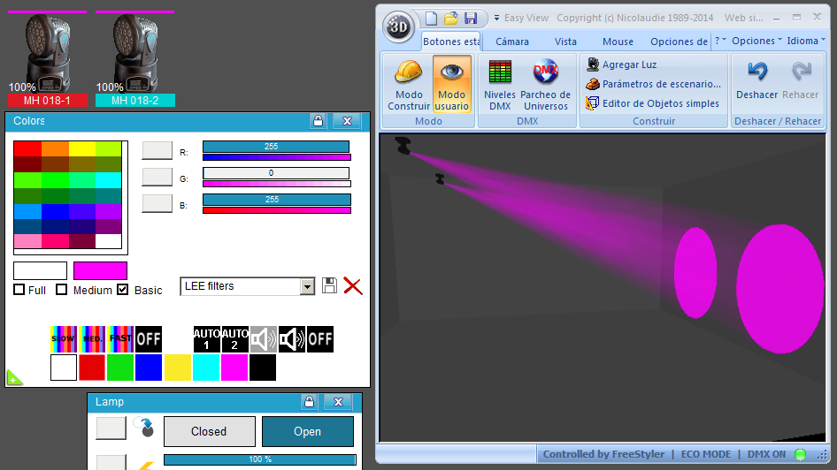 Esta Librería SSL2 está optimizada para trabajar con Magic 3d Easy View. Es decir para ver una representación 3D de las secuencias que estemos realizando con Freestyler, QLC+ o cualquier otro soft que se conecte con Magic 3d.