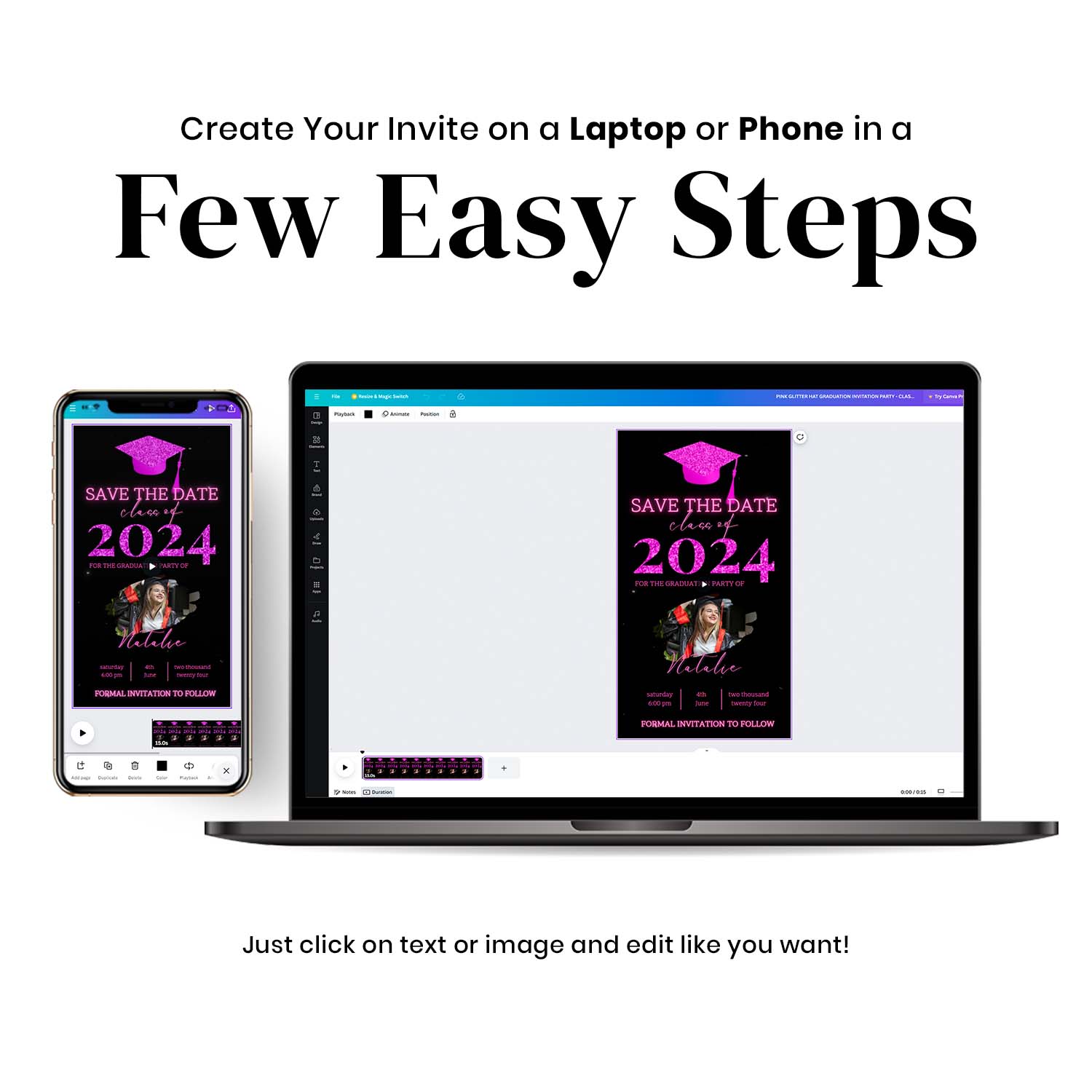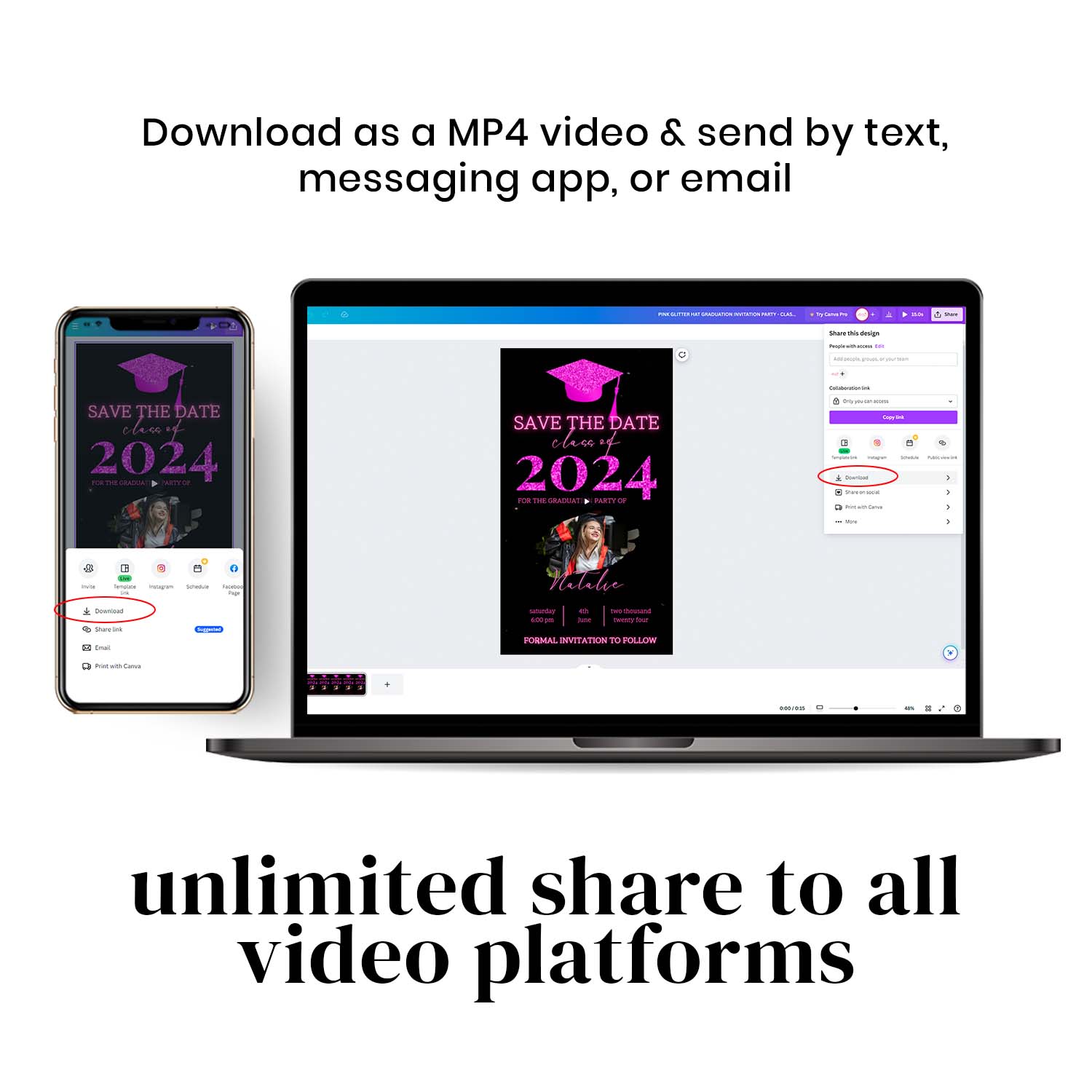 Pink Glitter Graduation Party Invitation Video Canva Template