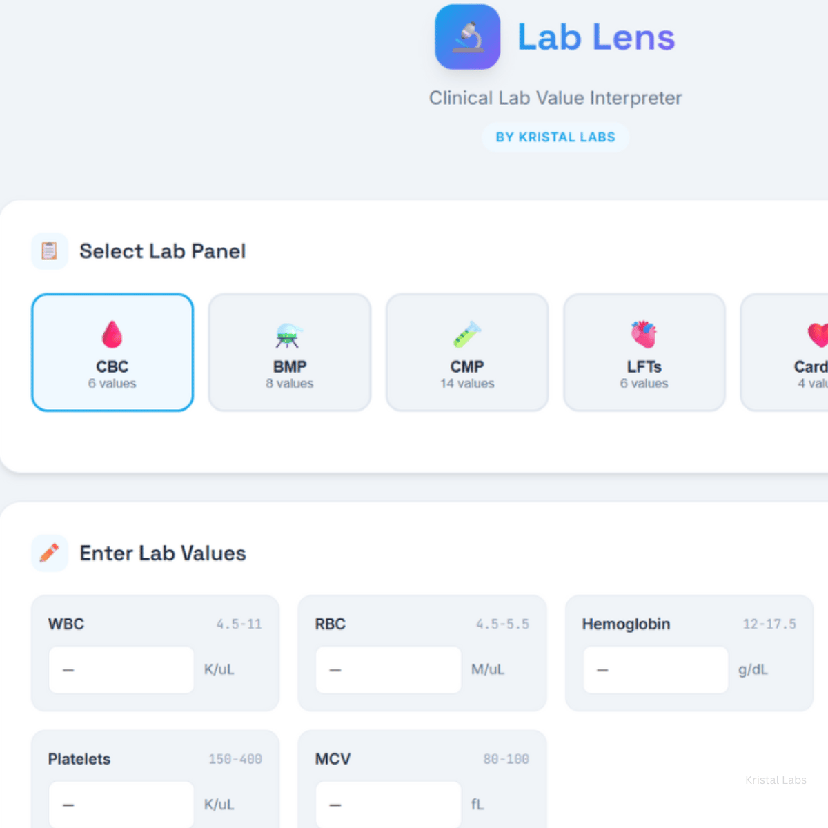 Built by Kristal Labs — tools that enhance clinical thinking, not replace it.