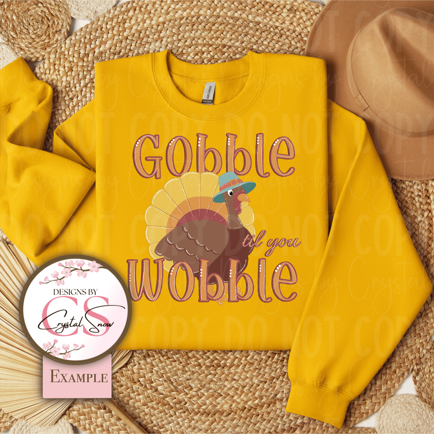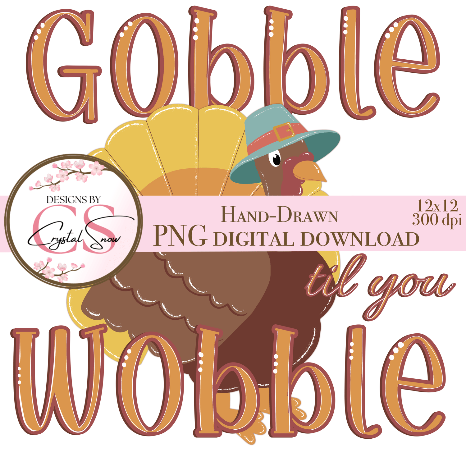 Gobble ’Til You Wobble PNG | Funny Thanksgiving Turkey Design | Fall Sublimation & Craft Print