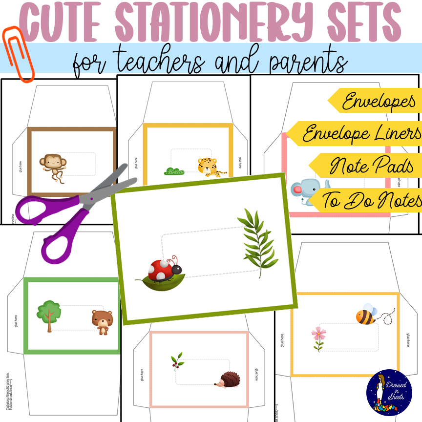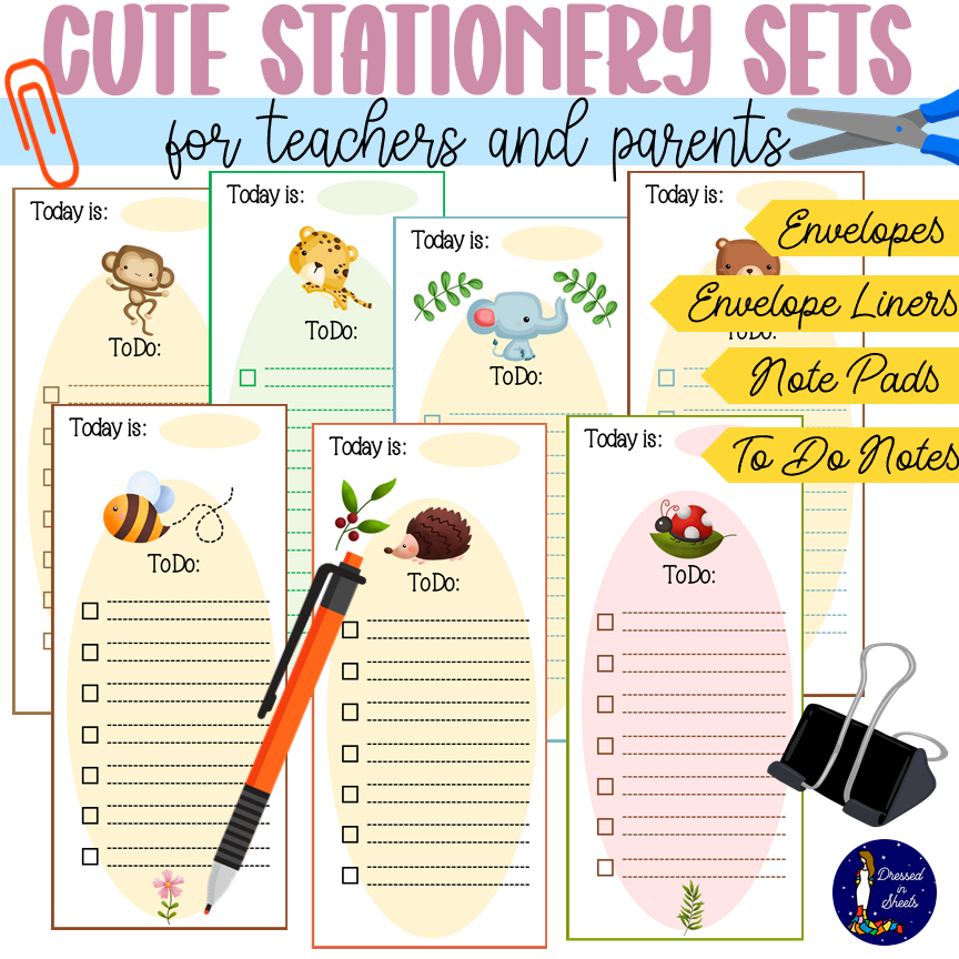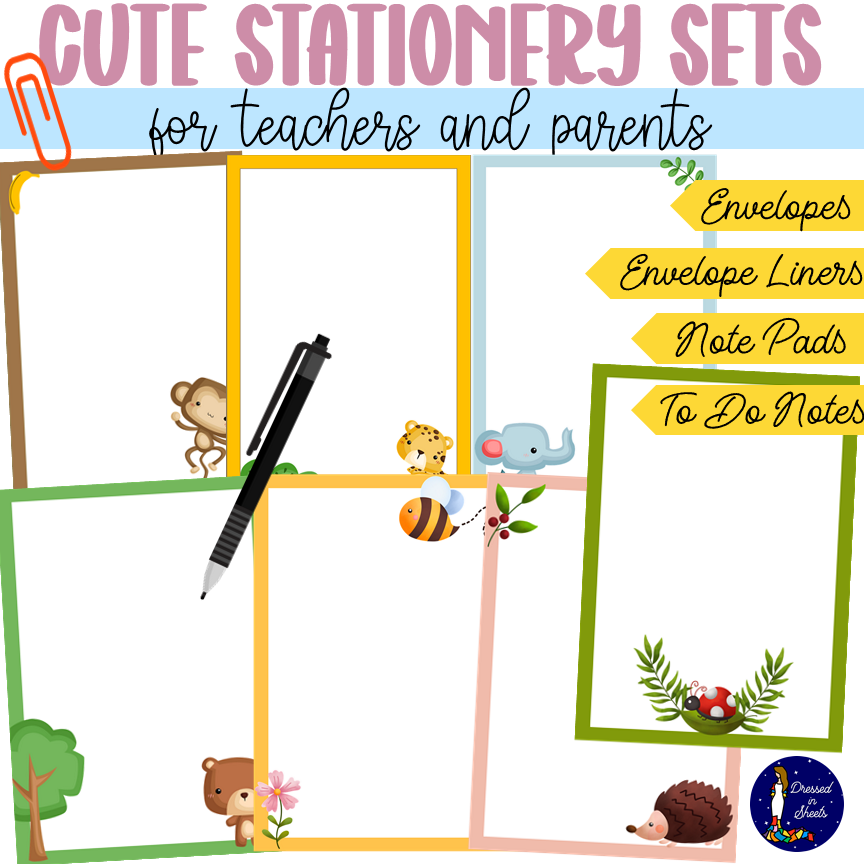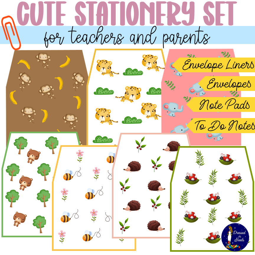 This stationery set includes 7 cute animal sets to use in your classroom, office, and/or home.