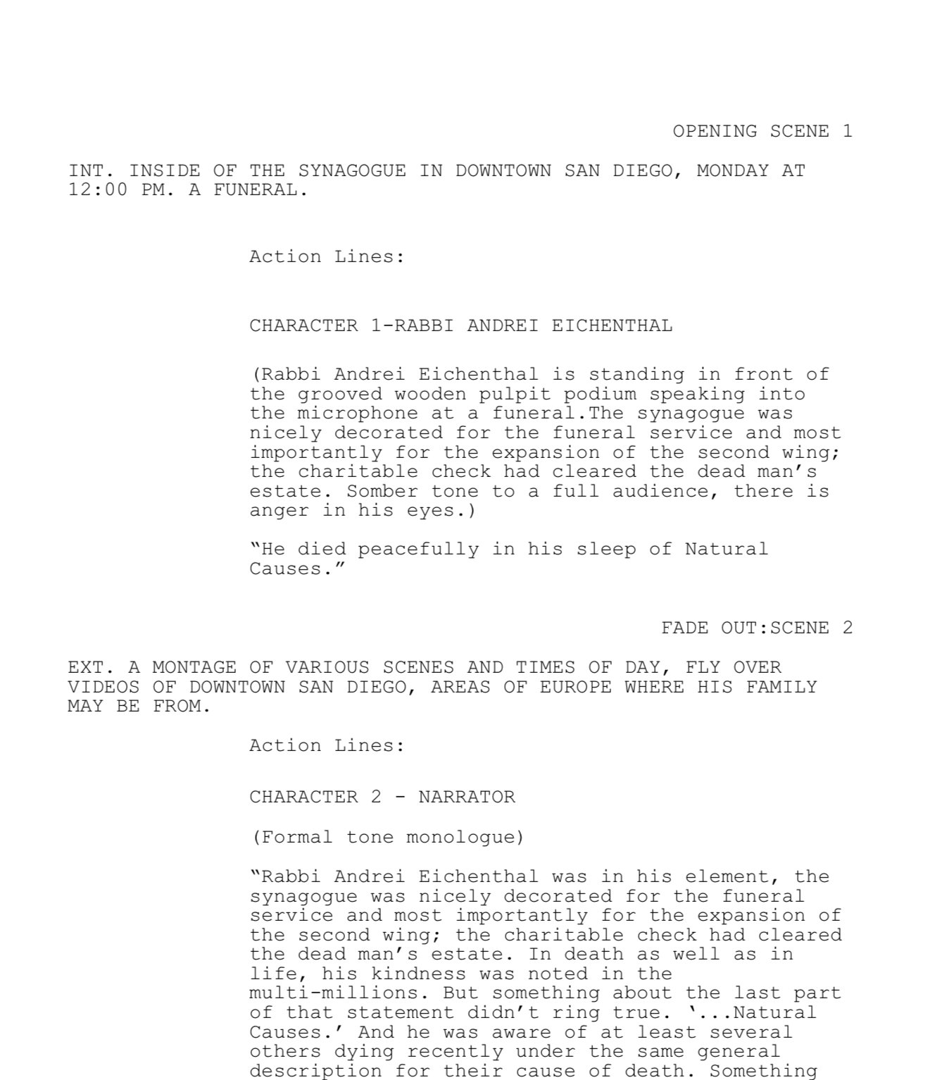 Screenplay,Movie Script,Play- Natural Causes Part 1 (Rabbi,the Hospice Nurse,& Lil Abe)