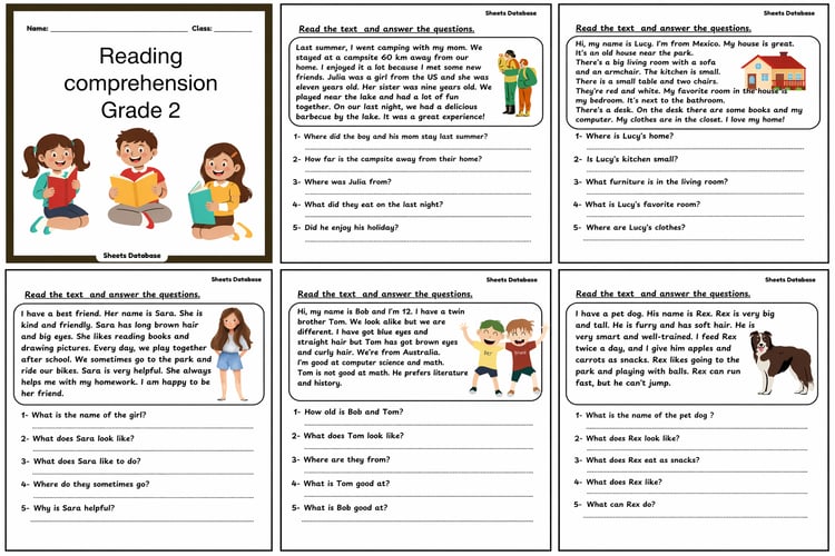 This printable PDF includes a collection of engaging reading comprehension worksheets designed for Grade 4 and Grade 5 students. Each worksheet features a short, age-appropriate story followed by 5 comprehension questions to strengthen reading comprehension, vocabulary, and critical thinking skills.