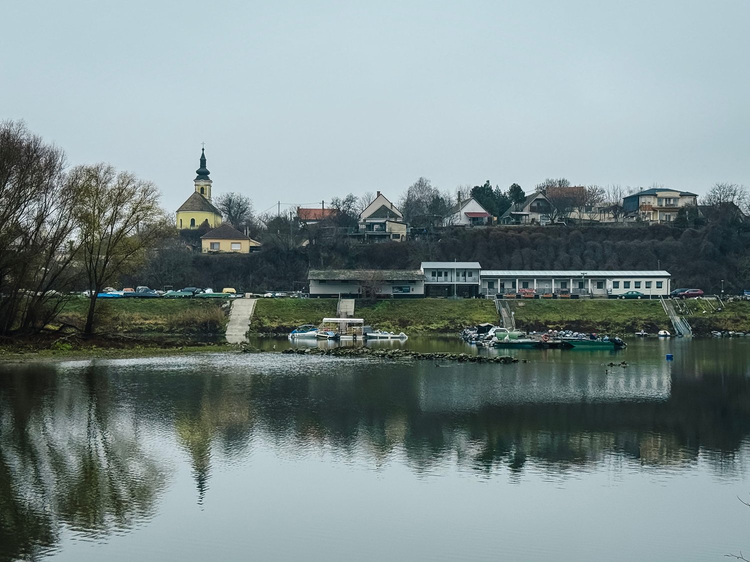 village, river, church, reflection, rural, landscape, waterfront, houses, hillside, water, calm, peaceful, countryside, town, architecture, settlement, nature, trees, winter, sky, travel, scenic, tranquility, outdoors, shoreline, residential, smalltown, heritage, Europe, reflectionwater, day, overcast, quiet, idyllic, nobody