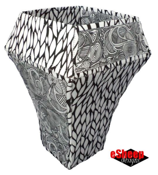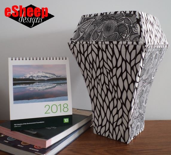 The fabric pieced Voilà Vase is a dimensional "paper pieced" item. The result is a large flared vase with an optional topper that can be made to be removable or permanently stitched in place. This is a surprising simple project, so don't be scared away by the idea of the "3D-ness". If you have basic sewing experience and can handle fusible interfacing, you'll have success with this. As a bonus, the PDF includes a "how to" for making the templates for a smaller version of the vase.
