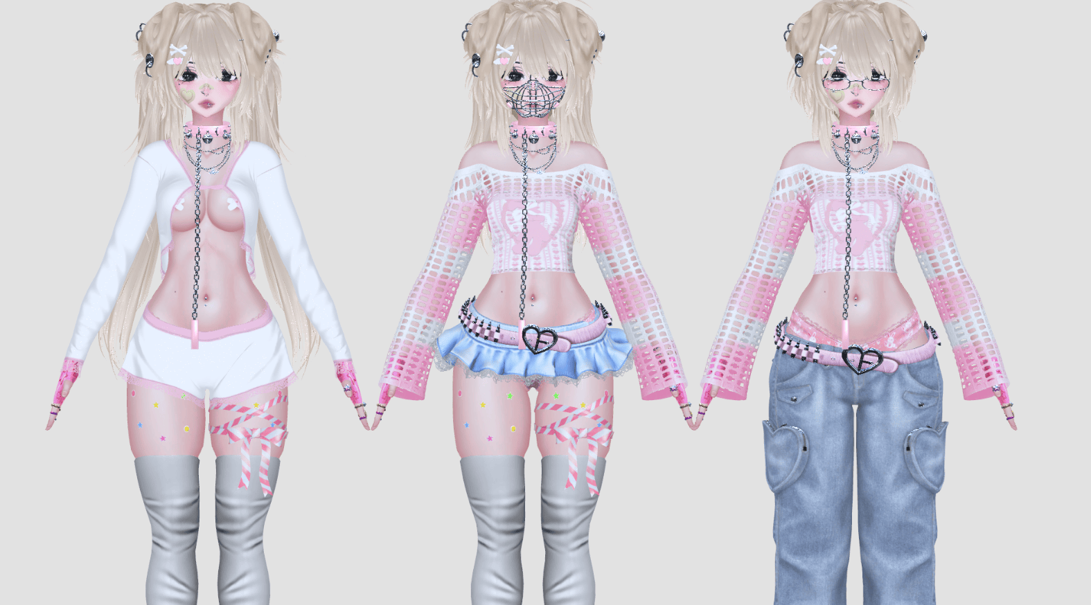 Boots | Skate Shoes | Sweater | Cargo Pants | Garter | Panties | Pasties | Pj Shorts | Pj Top | Shorts | Skirt | Socks | Tube Top | Sweater texture radials | Chunky Collar | Muzzle | Leash | Ears | Tail | Treat | Bun Hair | Pigtails | Side Hair Strands | 3 Bang Options | 4 Back Hair options | Bandaid | Bandaid 2 | Belly Piercing | Bracelet | Gloves | Rings | Earrings | Glasses | Necklace 1 | Necklace 2 | Nip Piercings | Nose Piercing | Piercings | Septum | Stickers | Multiple Eye Texture Swaps | Booba Radial | Accessories Color Swaps | Skirt Color Swaps | Pants Color Swaps | Shorts Color Swaps | Pj Color Swaps | Hair Color Swaps | Panties Texture Swaps | Socks Texture Swaps | Shoes Color Swaps | Tube Top Texture Swaps | SPS |