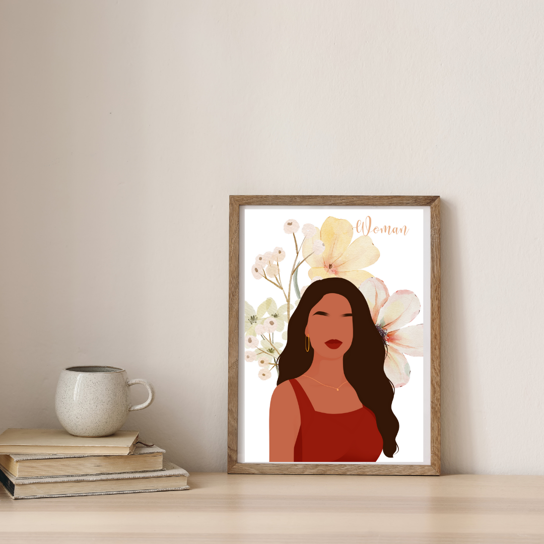 Apportez une touche d’élégance et de douceur à votre intérieur avec cette affiche artistique au format A4. Le portrait "WOMAN" met en valeur la beauté féminine sur un fond floral raffiné, créant une ambiance à la fois moderne et poétique.