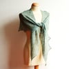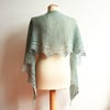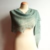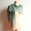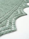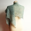 Duizendknoop: A shallow, triangle scarf, knit sideways. This design features a simple garter stitch body. The triangle edging, so reminiscent of the leaves of the Duizendknoop (Persicaria perfoliata), is knitted on at the same time. Worked at a loose gauge, Duizendknoop is a lovely and airy layering piece.