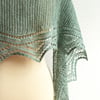 This pattern features a garter stitch body with a lace edging worked simultaneously. Stitches used include knit, purl, k2tog, skp, kfb, m1 and yo. This pattern is suitable for the intermediate knitter.