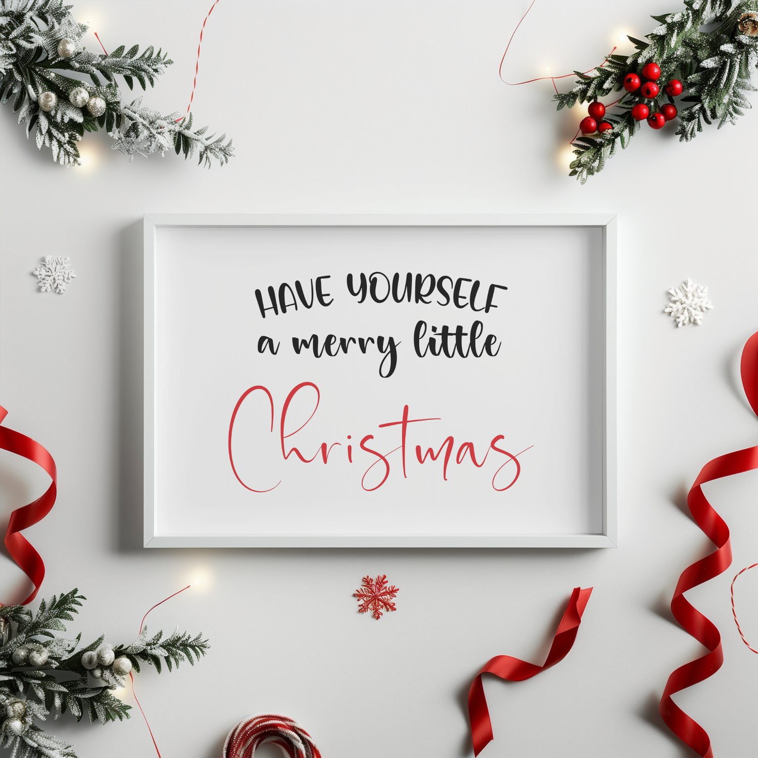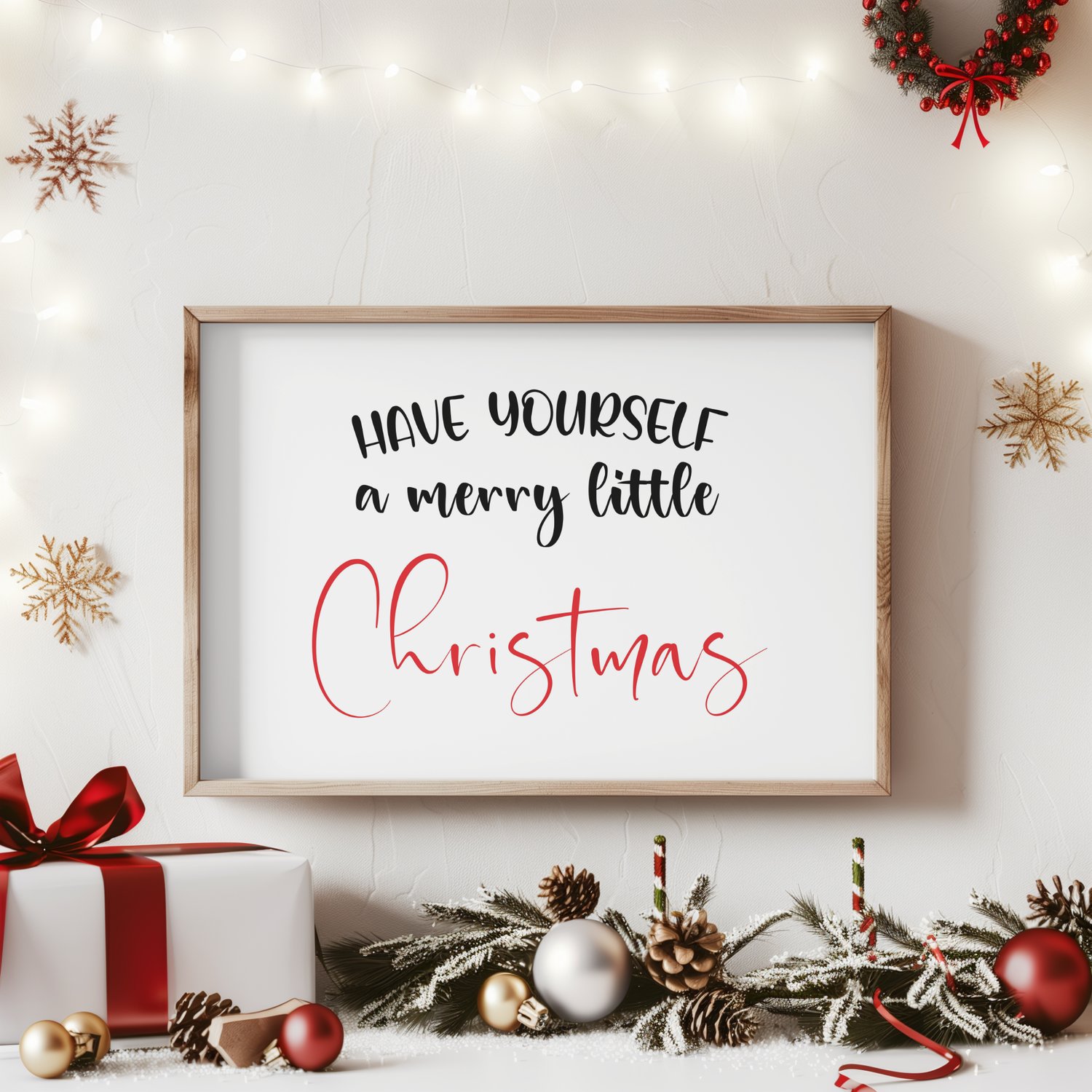 Bring timeless Christmas cheer to your home with this elegant “Merry Little Christmas” printable wall art. Featuring a clean white background with modern black lettering and a festive red “Christmas” script, this design adds a warm, minimalist touch to any holiday space.