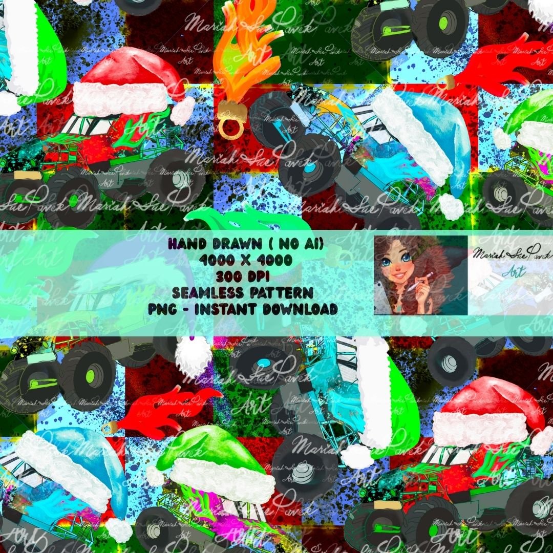 Christmas Monster Truck Seamless Santa Hat