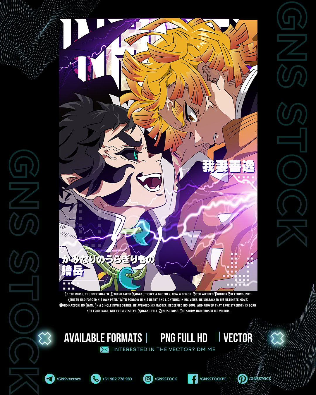 Anime Vector – Zenitsu vs Kaigaku | Demon Slayer | Design for DTF, Sublimation, T-Shirts | Files: CDR, PDF, PNG, SVG