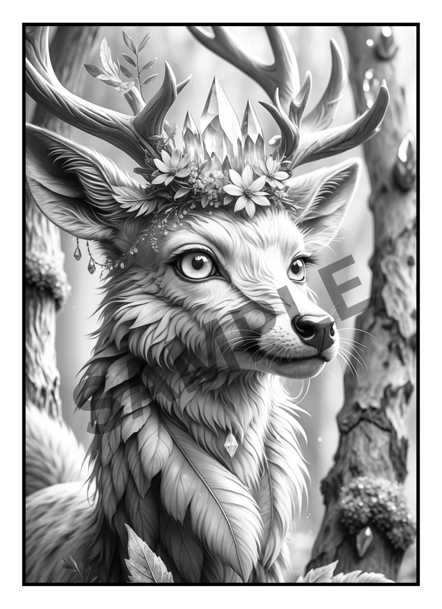 Forest Guardians Greyscale Coloring Pages (Digital Only)
