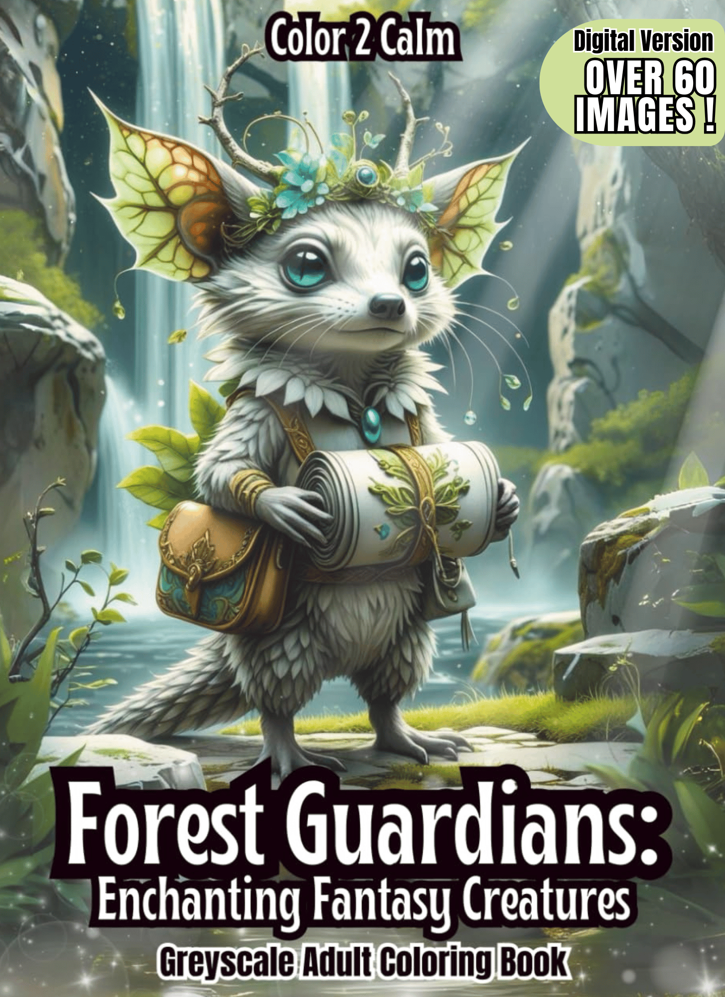 "Forest Guardians: Enchanting Fantasy Creatures Greyscale Adult Coloring Book" is an escape into the magical and mythical. Whimsical Fantasy Animals and Creatures are entrusted with the task of Guarding the Enchanted Forest."