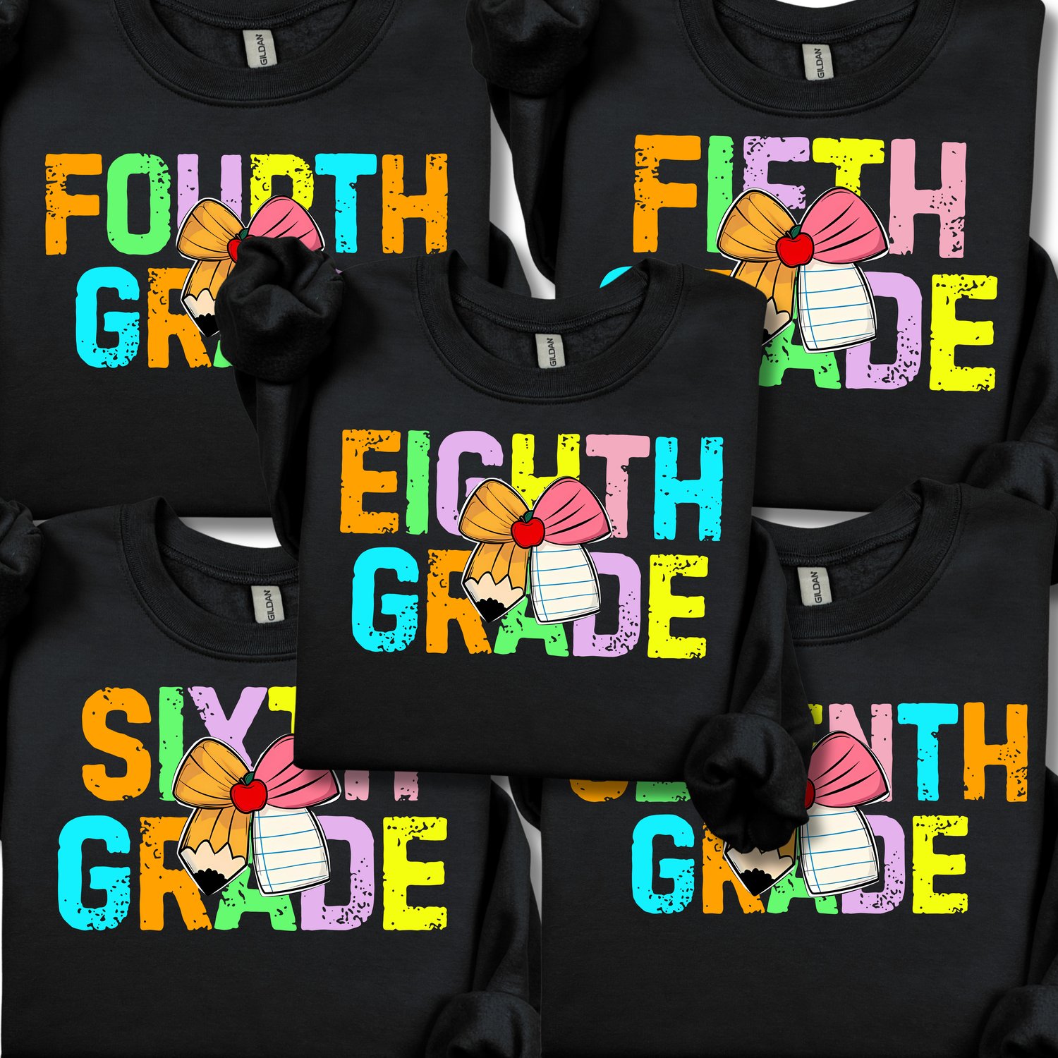Back to School PNG Bundle, 4th-8th Grade, Preppy Neon, Grades PNG