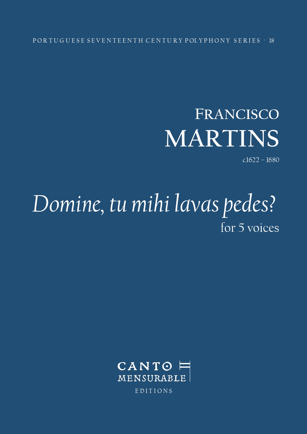 The antiphon Domine, tu mihi lavas pedes? for five voices (SSATB), by Portuguese composer Francisco Martins (c.1622-1680). Appendix with an uncomplete setting of the same antiphon for four voices (SATB).