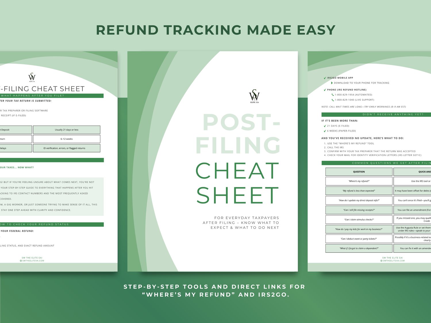 ✅ Refund Tracking Tools: Direct links to “Where’s My Refund,” IRS2Go app, and hotline numbers