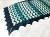 “Blauwe Branding” is Dutch for “Blue surf”, which is exactly what the waves in this stole remind me off! While I made my version in one main color, and four contrast colors, I expect it will be equally gorgeous in a long gradient yarn.
