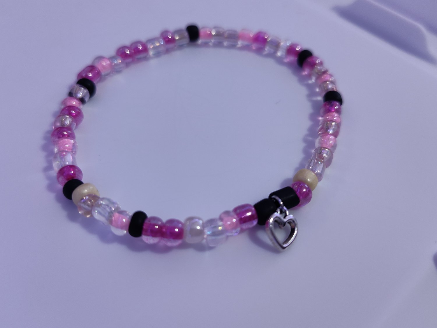 Materials: Glass seed beads, silver heart charm