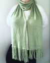 I created an eye catching abstract lace-work thistle for the pattern's motif...my Mum loved abstract designs...which is surrounded in a sea of stocking stitch. The edge of the scarf uses broken rib to keep it simple and clean. But there are two versions of this scarf: a fringed and non fringed versions, and the end borders are slightly different to take this into account. Overall, the pattern is simple and relaxing to knit, making it ideal for both beginners starting their lace-work journeys and more experienced knitters.