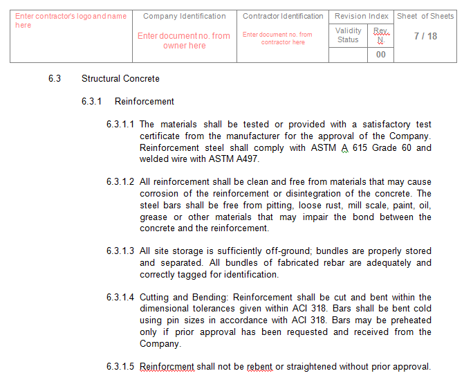 Inside this ITP for Concrete Works you get several documents: