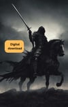Rides a knight on a black horse, dark and pure.
