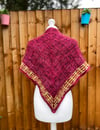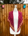 Diascia is a winged triangle shawl knit from the top down; this is a great shape if you like to wear your shawl with the point at the front (see photo one) but also works well if you prefer to wear it in the more traditional way (photo two).