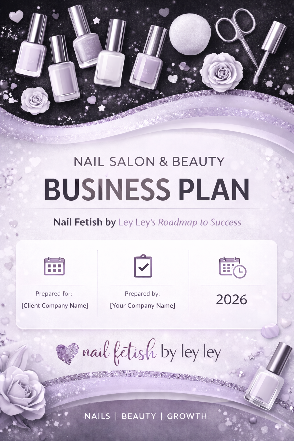 The Nail Salon & Beauty Business Plan (2026 Edition) by Nail Fetish by Ley Ley is a 61-page fully editable ebook designed for nail technicians and beauty entrepreneurs who are ready to operate like a true business owner.