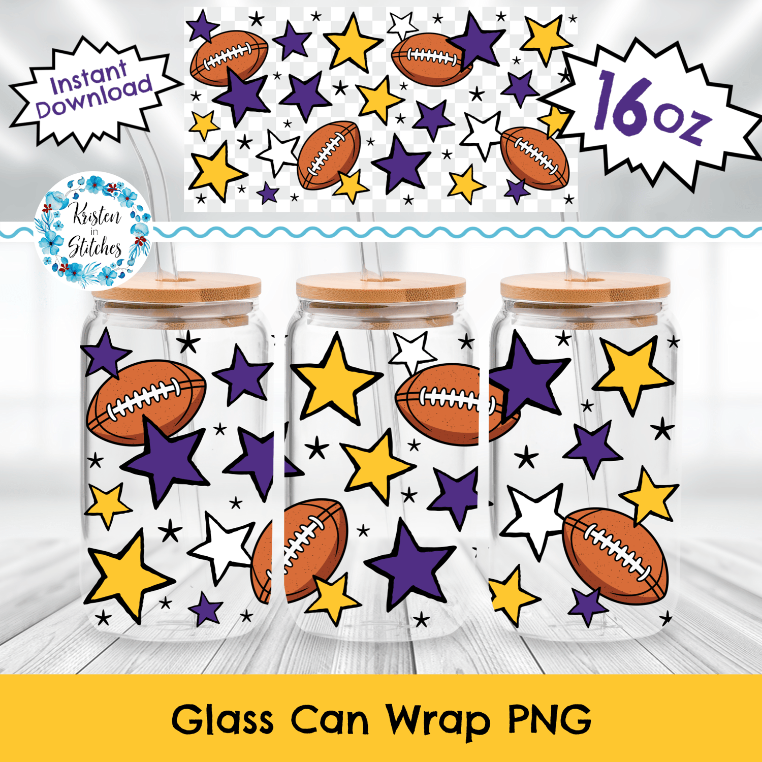 Football Team 16 oz Glass Can Wrap Transparent PNG, Minnesota Vikings Colors Purple and Yellow Gold