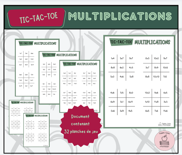 Tic-Tac-Toe - Multiplications - 2e et 2e cycle
