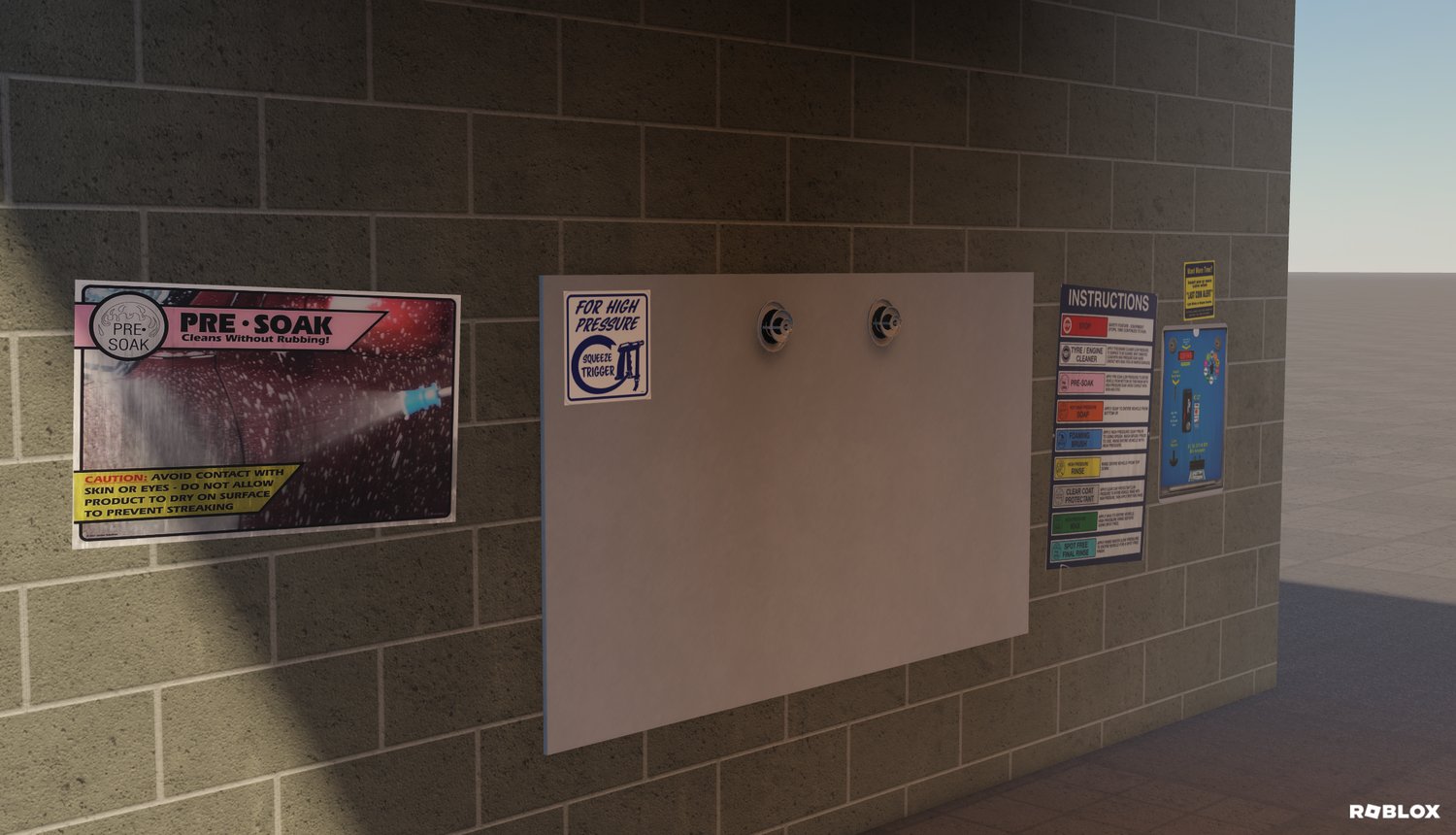 This car wash building does not include the interior, but it is empty on the inside, allowing you to add any interior you wish. It has a width of 137 studs, a depth of 16 studs, and a height of 19 studs. Additionally, the building has many assets that you can use for your personal needs, such as ventilation and lights. Everything is organized, separating the main parts of the build with the detailed assets.