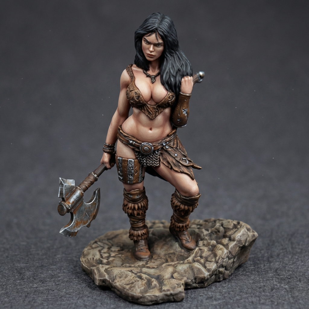 Darena – Barbarian of the Rocky Lands is a high-detail fantasy warrior sculpt designed for professional 3D printing and commercial exploitation. This model represents a fierce barbarian woman forged by harsh terrain and constant combat, standing defiantly atop a rocky base that reflects her brutal homeland.