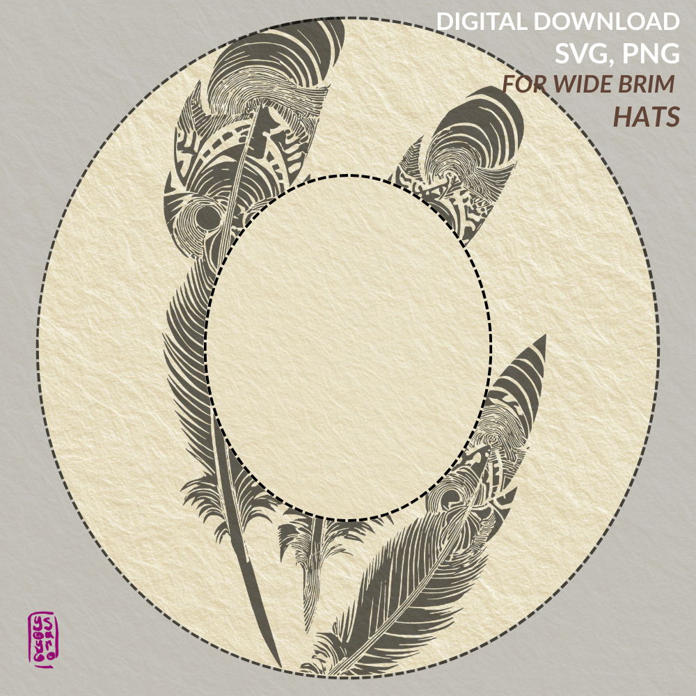 Tags: Feather Engraving, Large Feathers SVG, Tribal Feather Art, Boho Hat Design, Plume Laser File, Laser Engraving File, Hat Engraving SVG, Wide Brim Hat Art, Native Inspired, Western Engraving, Leather Burning, Digital Download,Â
