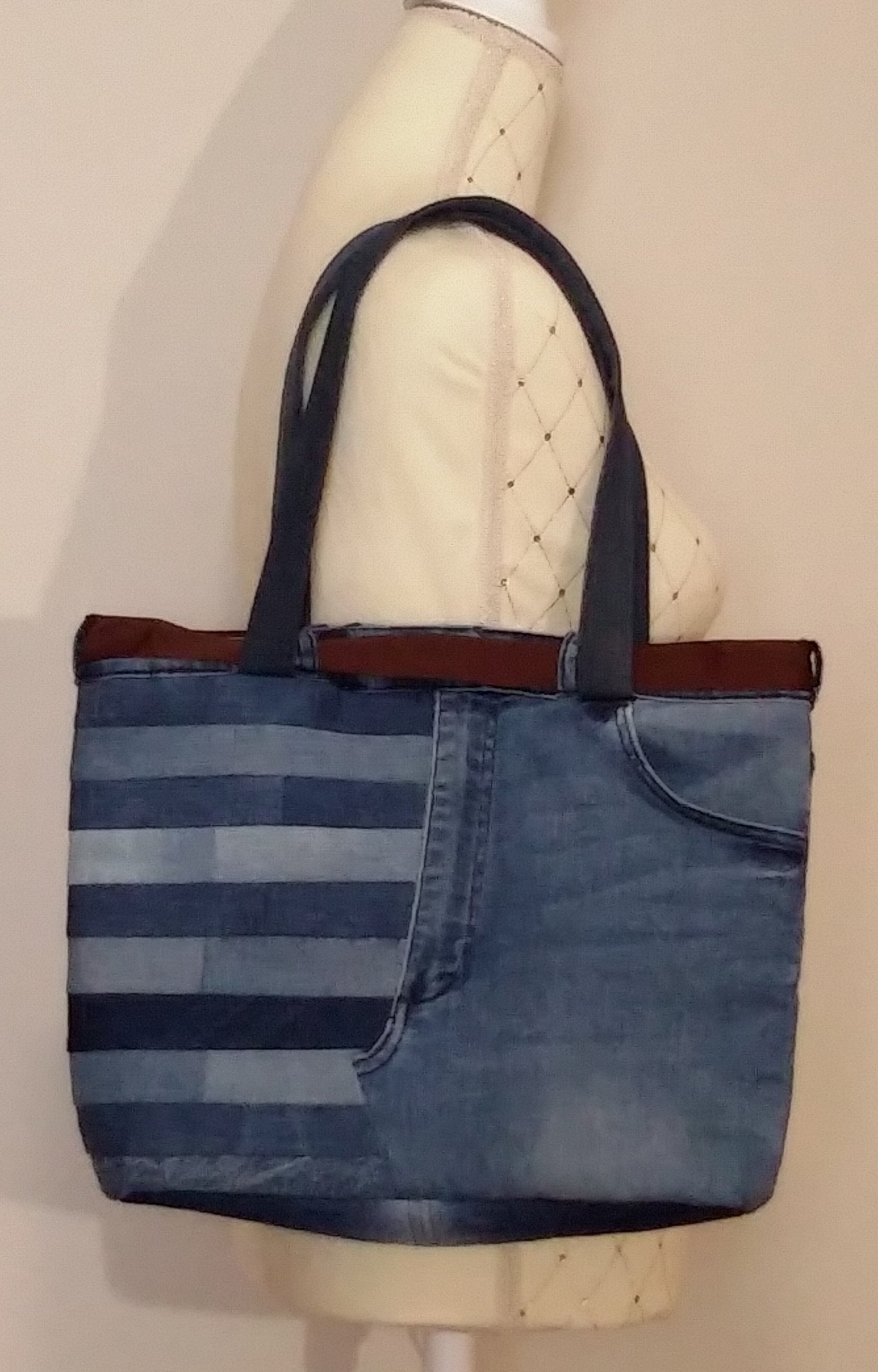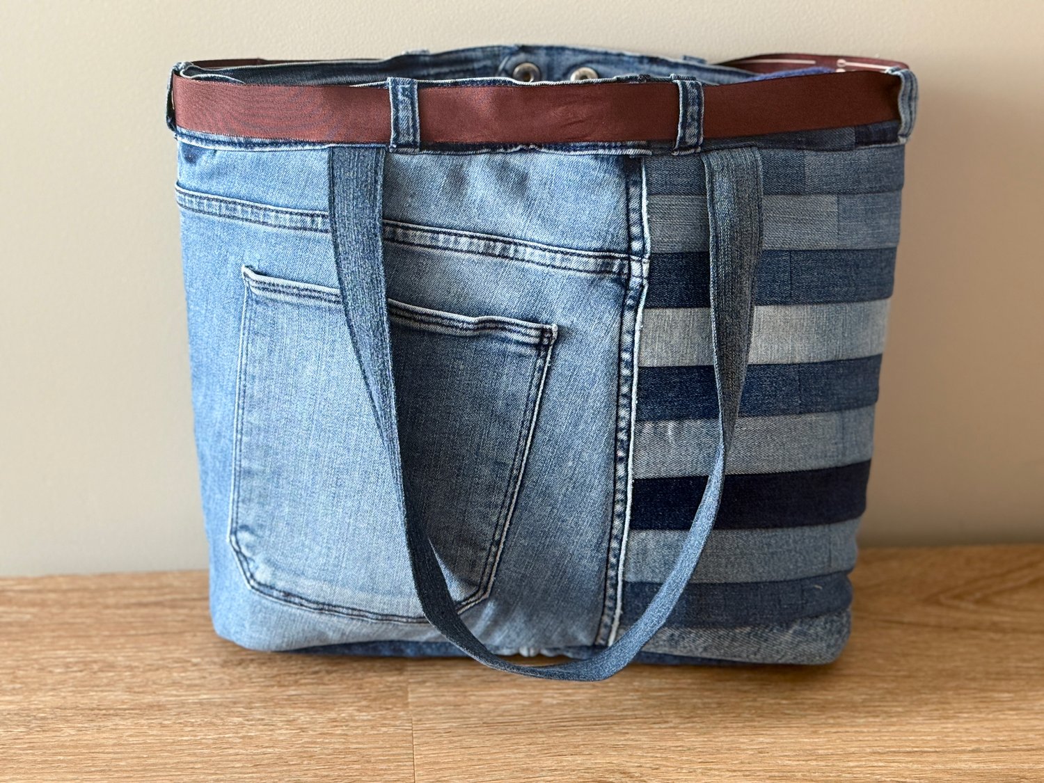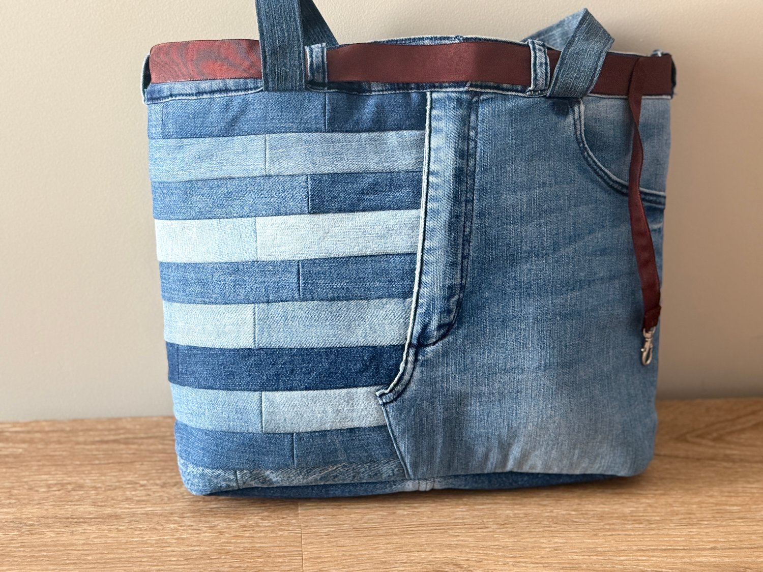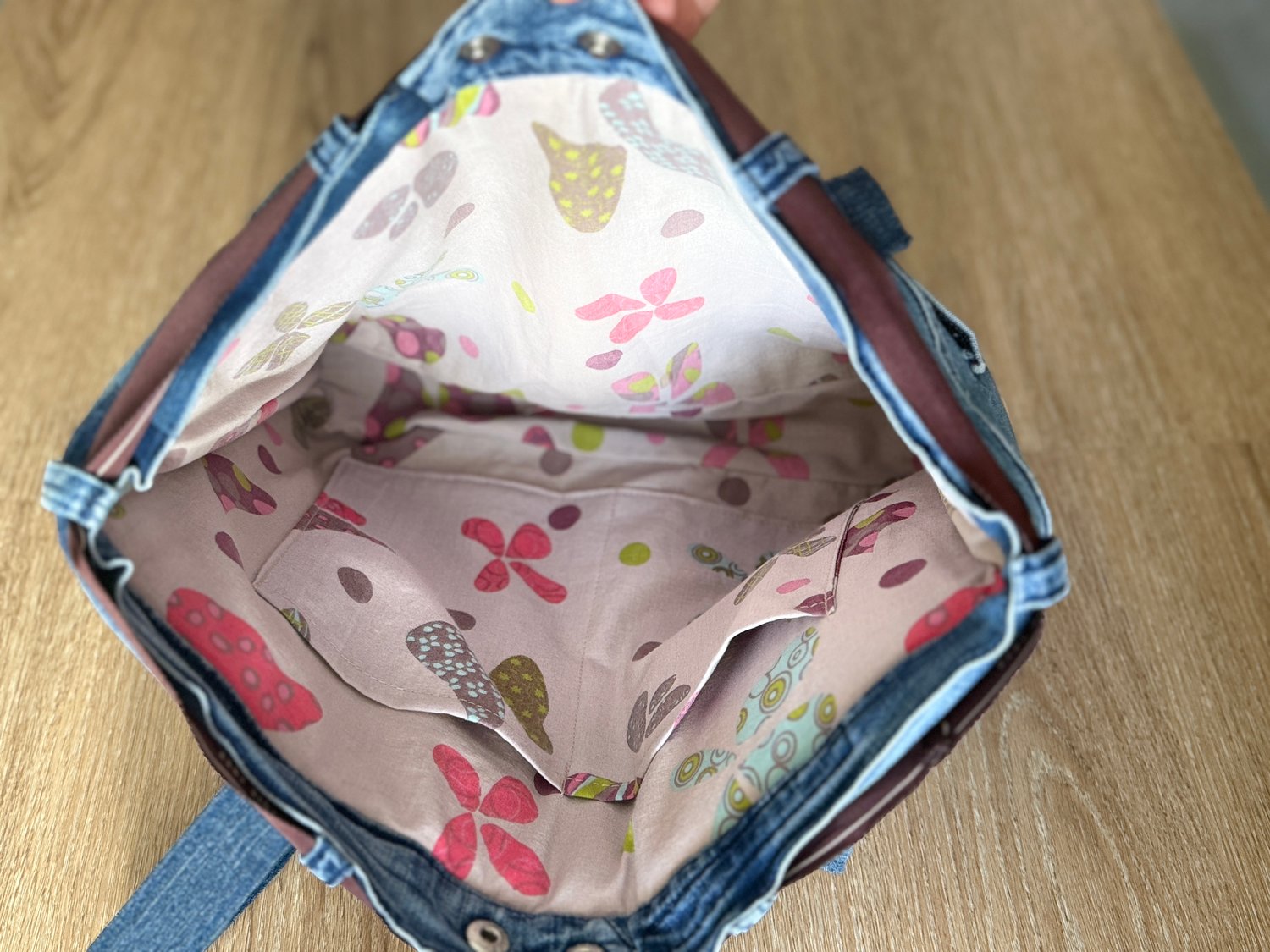 Eco-Friendly Upcycled Tote Bag – Handmade Bag with multiple Pockets made from Sustainable Fabric from Recycled Materials