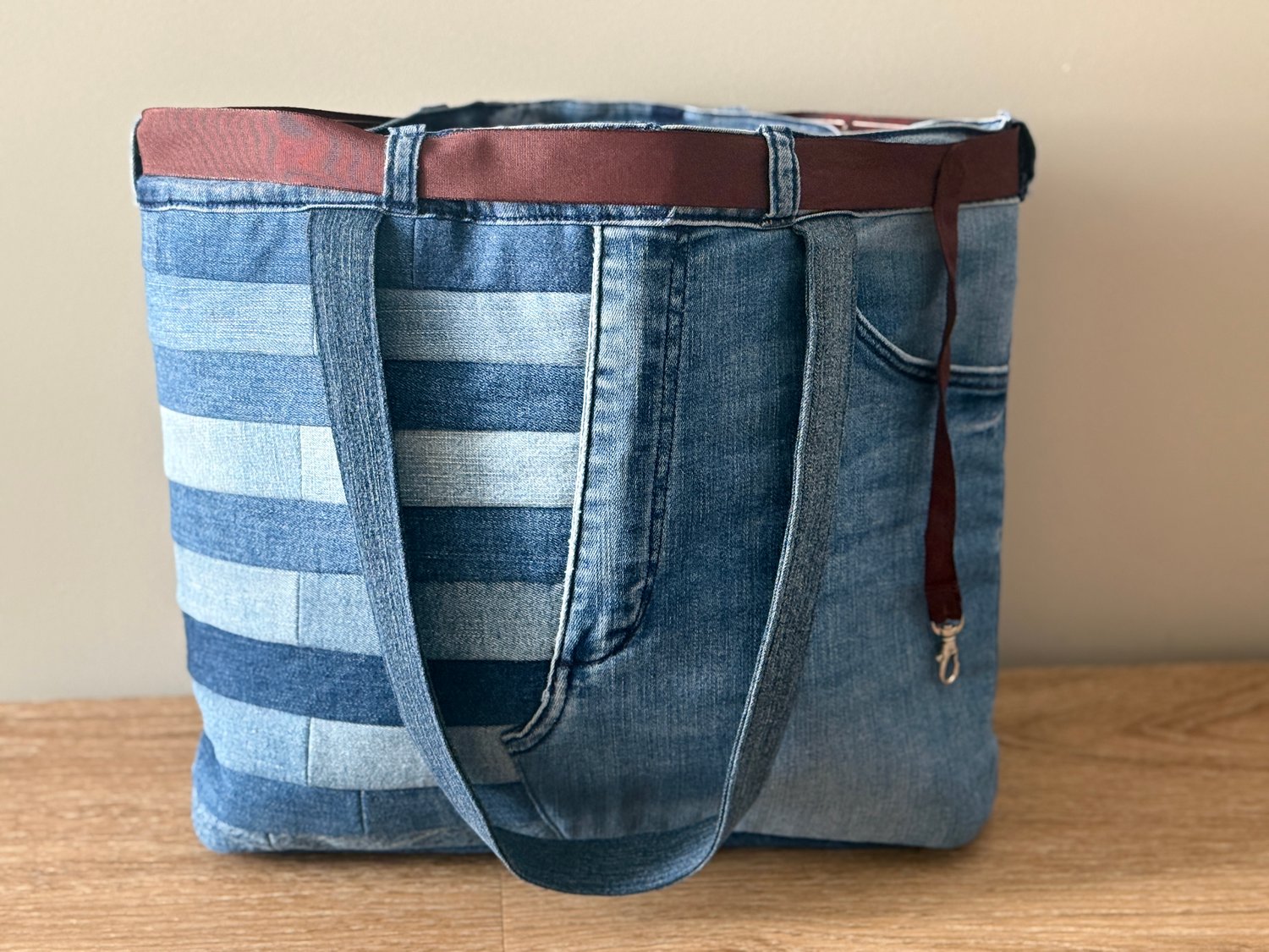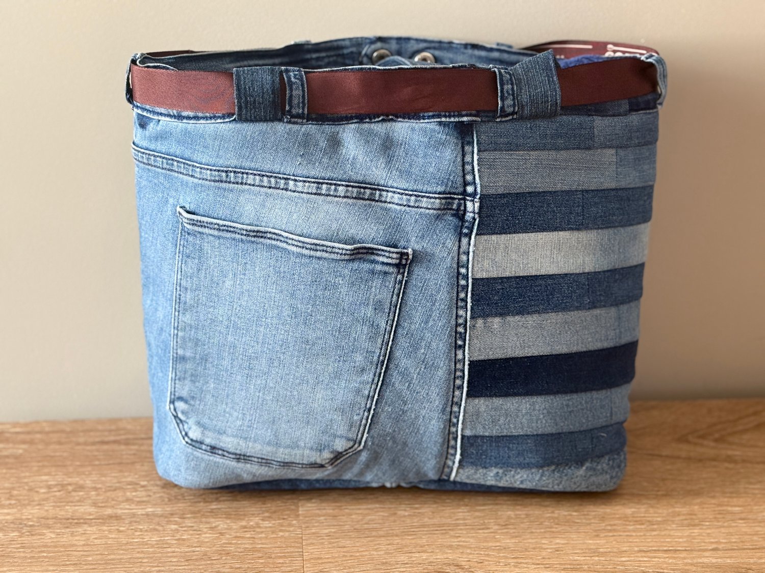 Handcrafted with sustainability in mind, this stylish tote bag is made from repurposed materials—giving new life to fabric that would otherwise go to waste. Perfect for everyday use, it combines functionality with a commitment to the planet.
