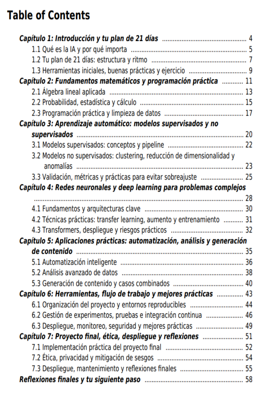 ¿Quieres dominar la inteligencia artificial pero no sabes por dónde empezar? Este ebook es tu plan intensivo de 21 días para pasar de cero a experto, combinando teoría esencial, práctica guiada y proyectos reales que te conectan directamente con el futuro de la tecnología.