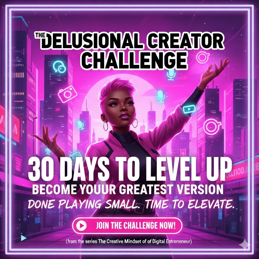 - Full access to the Delusional Creator community group — a space where we hold each other accountable, share wins, and keep the energy high.