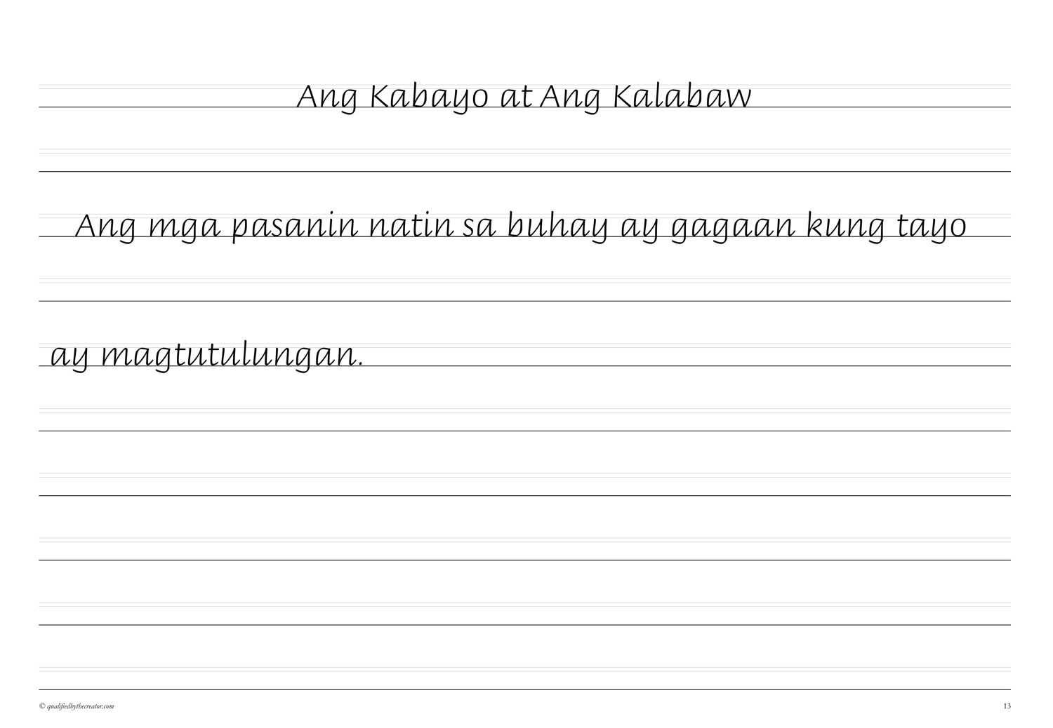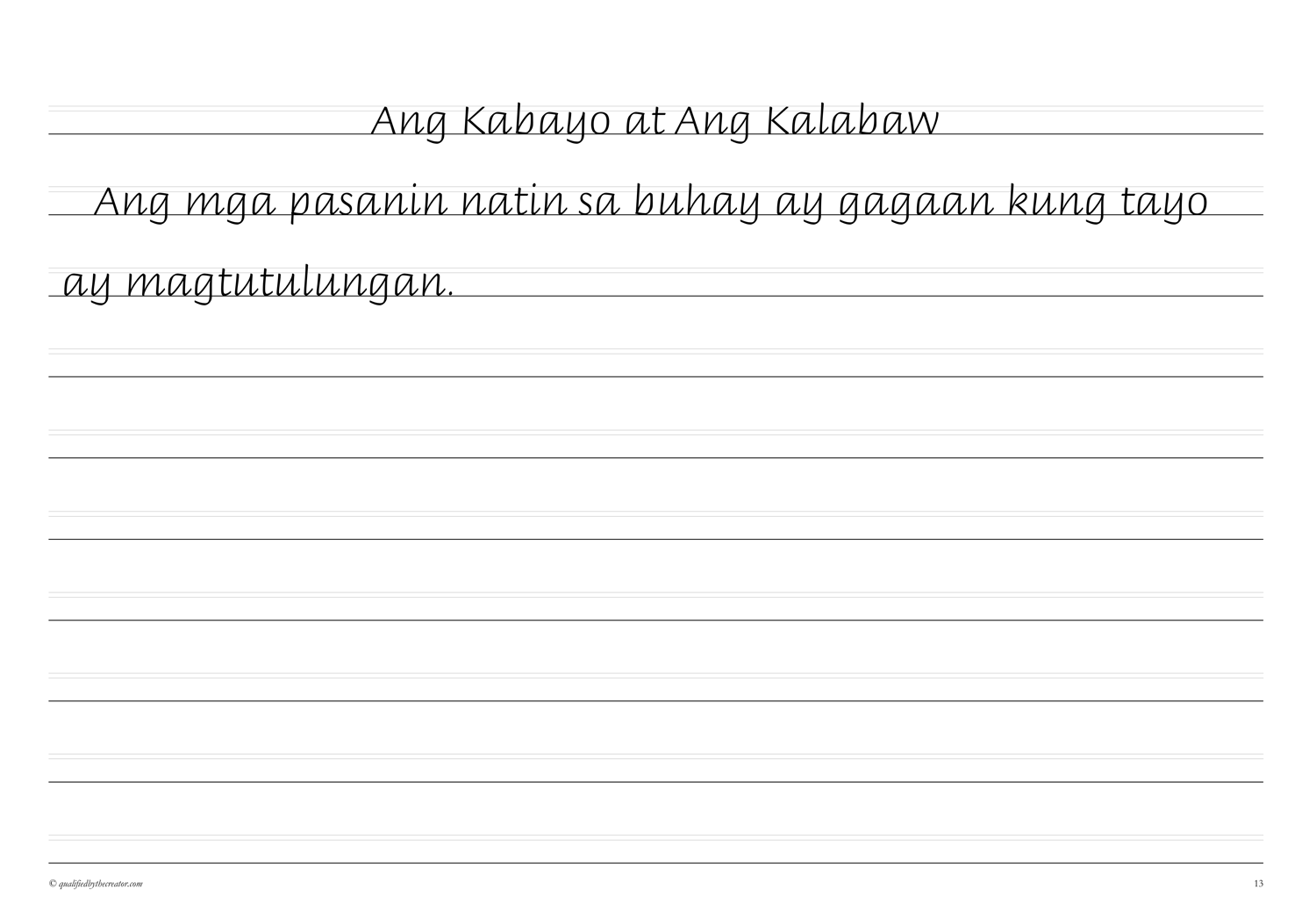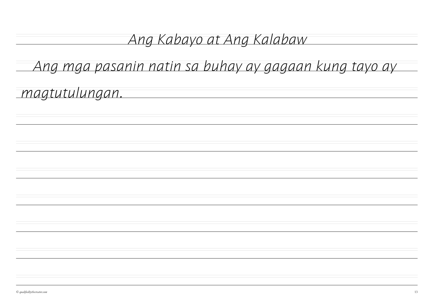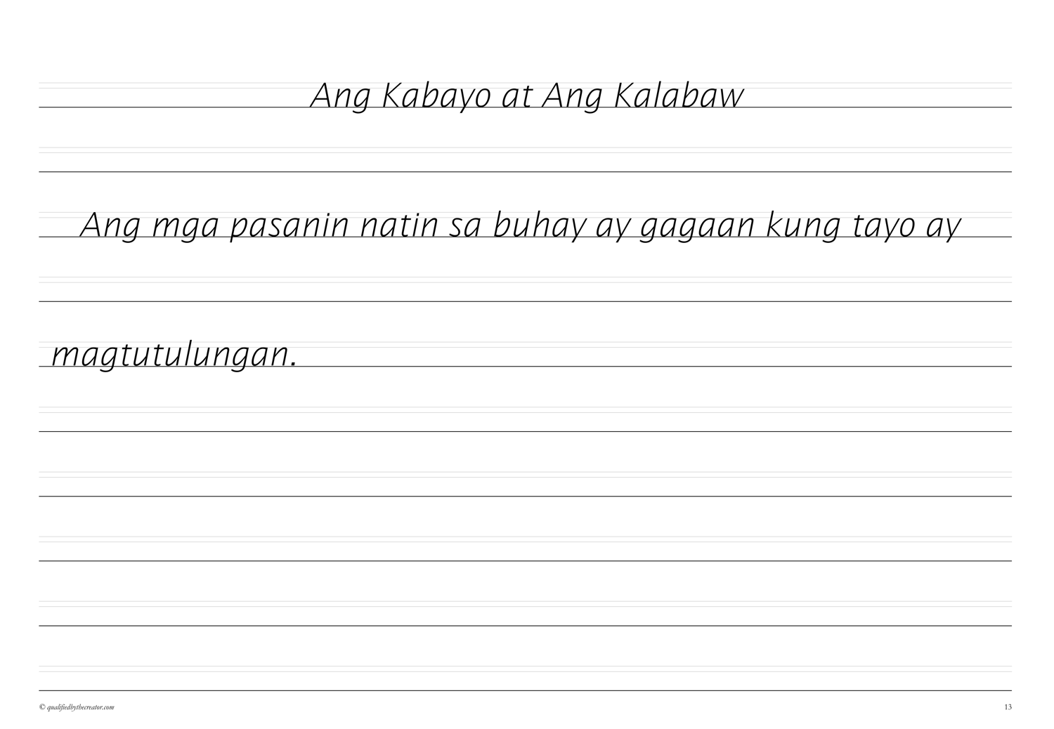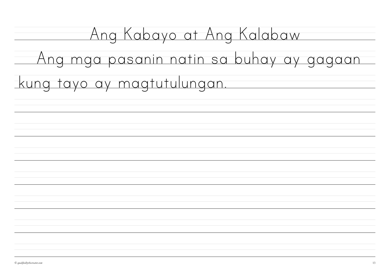 Make Copywork time a pleasure with this beautifully created, minimalist, print-and-go second Copywork volume of morals from Aesop fables in Filipino/Tagalog.