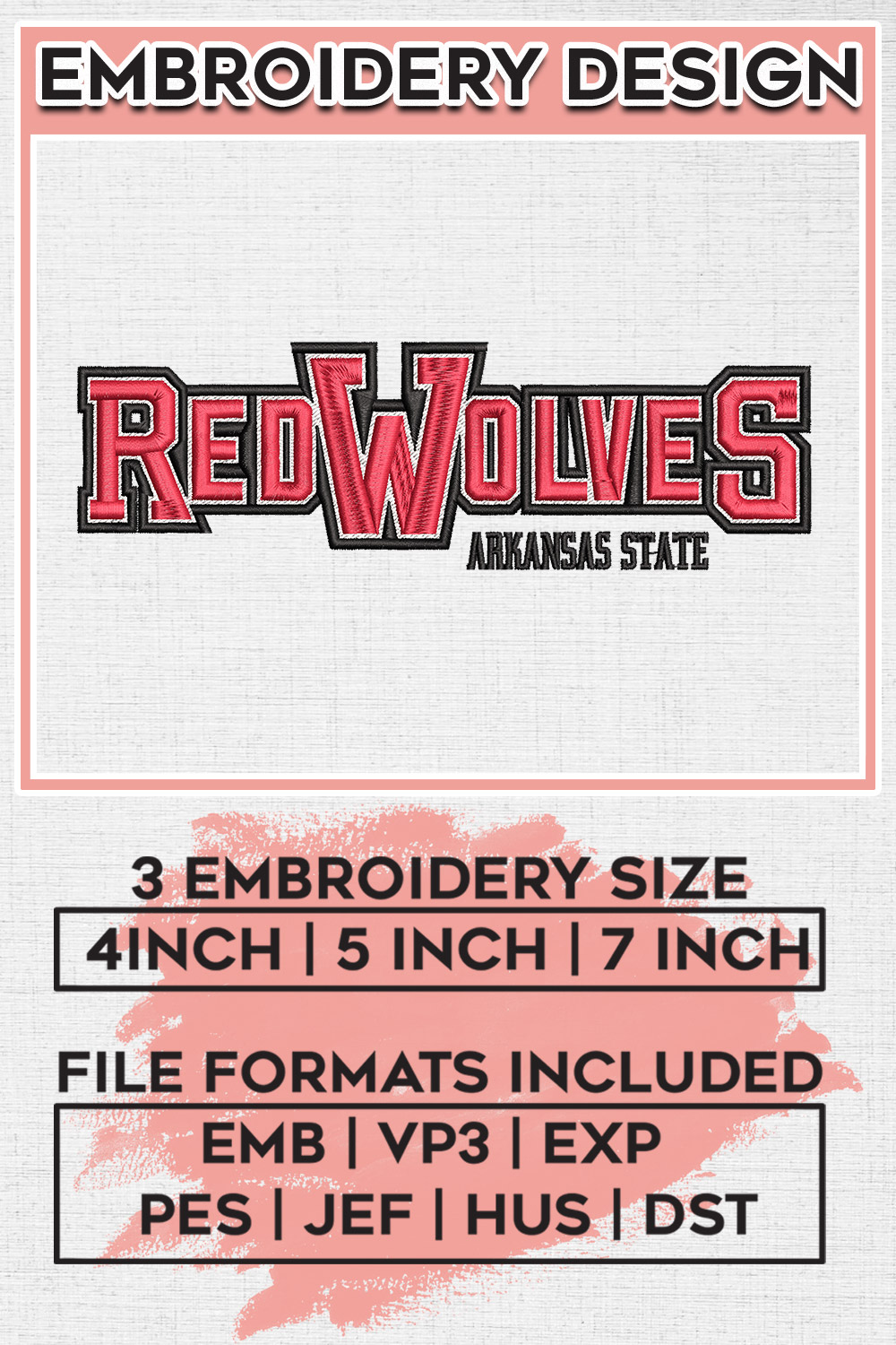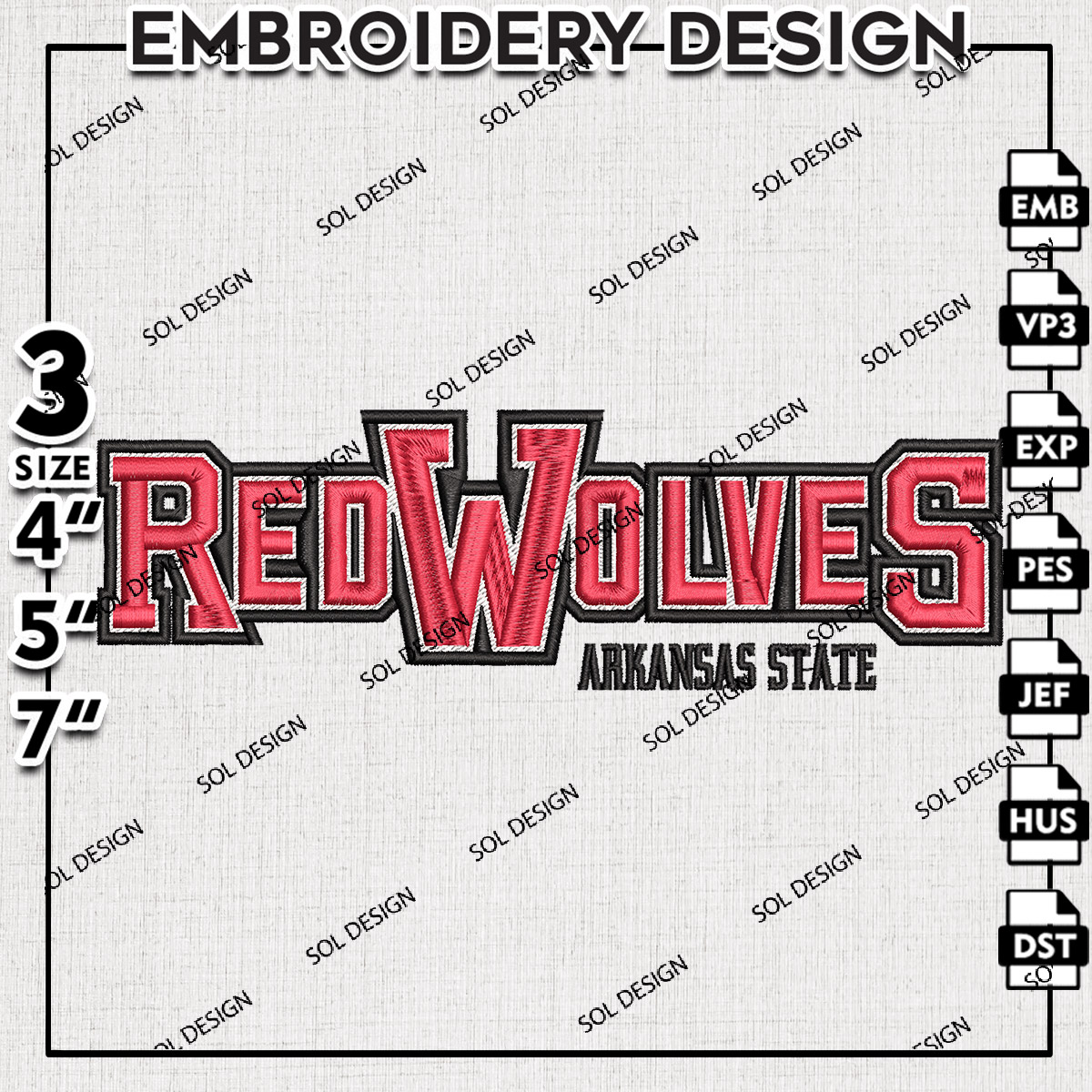 NCAA Red Wolves Wordmark Logo Embroidery Files, NCAA Arkansas State Red Wolve Football Team Embroidery, NCAA Teams, Game Days, Machine embroidery designs, Digital Download