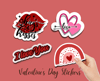 Valentine's Day Stickers with love-themed symbols in pink and red.