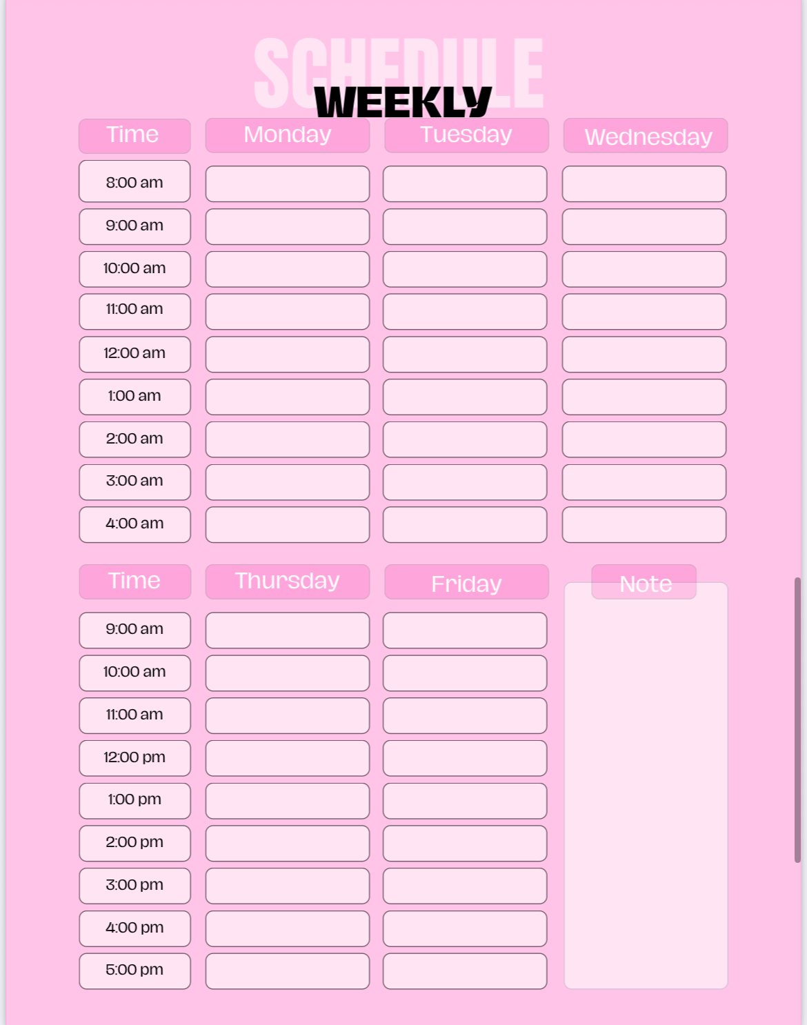 Study Schedule → Create a weekly timetable for classes and study blocks.