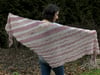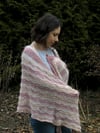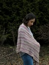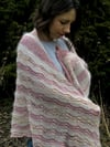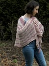 The Fairy Wisp Shawl takes you on a journey through a fairy tale where you will explore cosy garter stitch, ethereal sections of laceweight mohair, and a wavy lace design. The asymmetrical triangular construction starts at the smallest tip, and graduates into the lace edge.