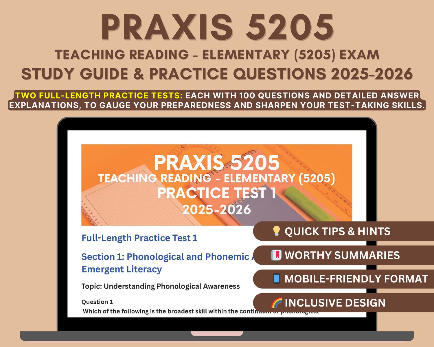 📘 Praxis Teaching Reading – Elementary (5205) Study Guide 2025-2026