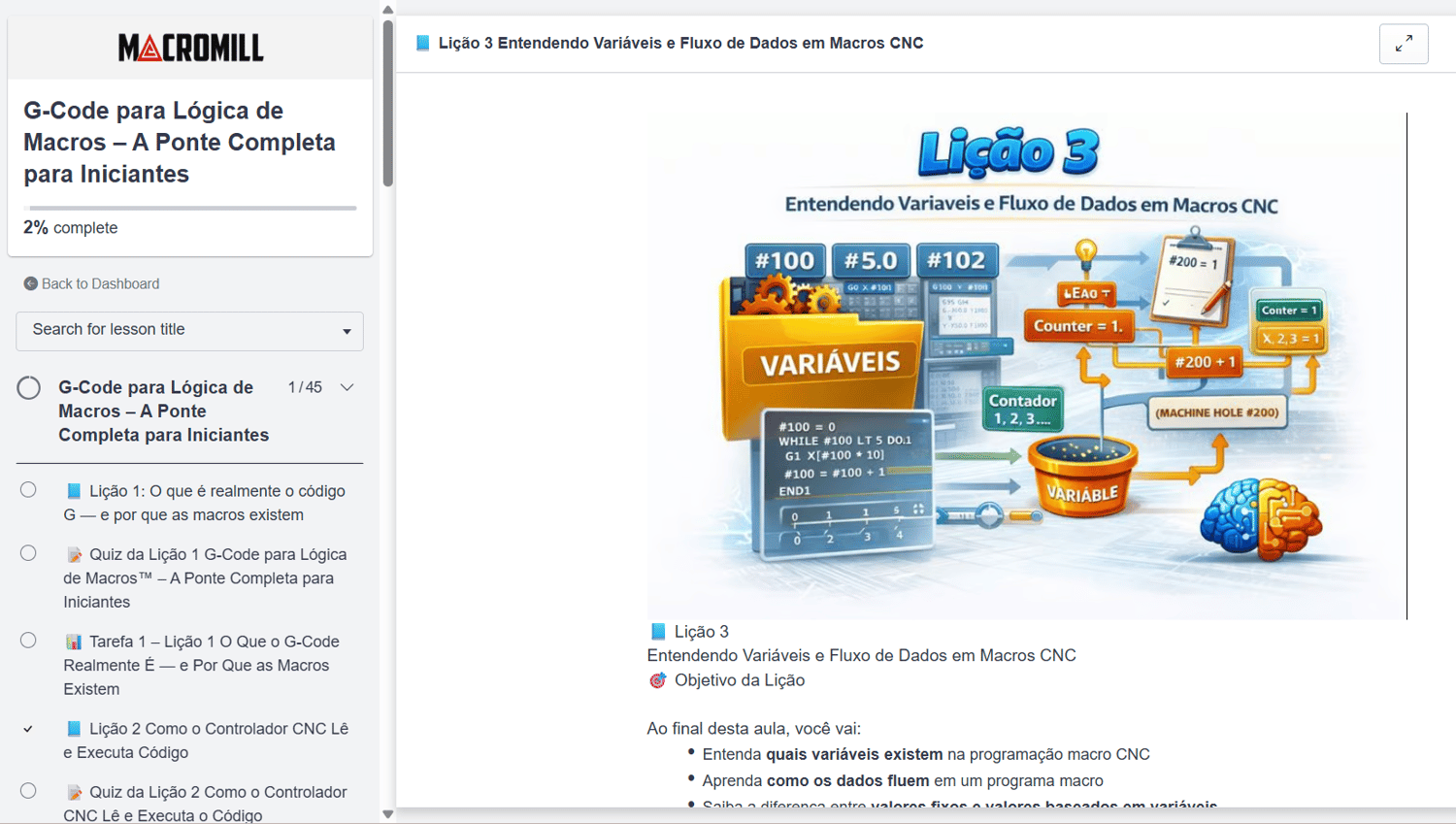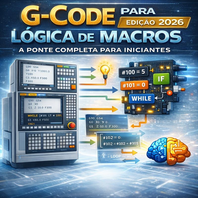 G-Code para Lógica de Macros ensina iniciantes como o G-code simples evolui para uma lógica CNC inteligente usando variáveis, condições e loops — explicado de forma clara, passo a passo, sem complexidade.