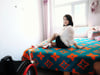 Carrie folded her polio legs and put on stockings.