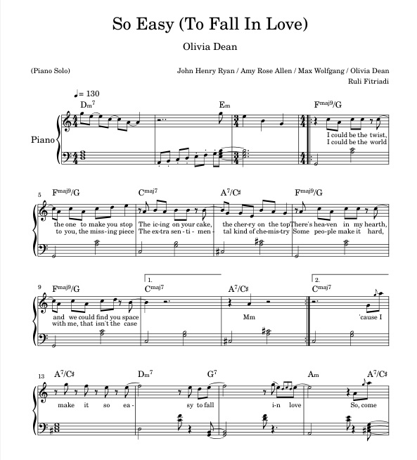 How To Play Olivia Dean - So Easy (To Fall In Love), Piano Solo Lyrics Chords Notes PDF Audio MP3