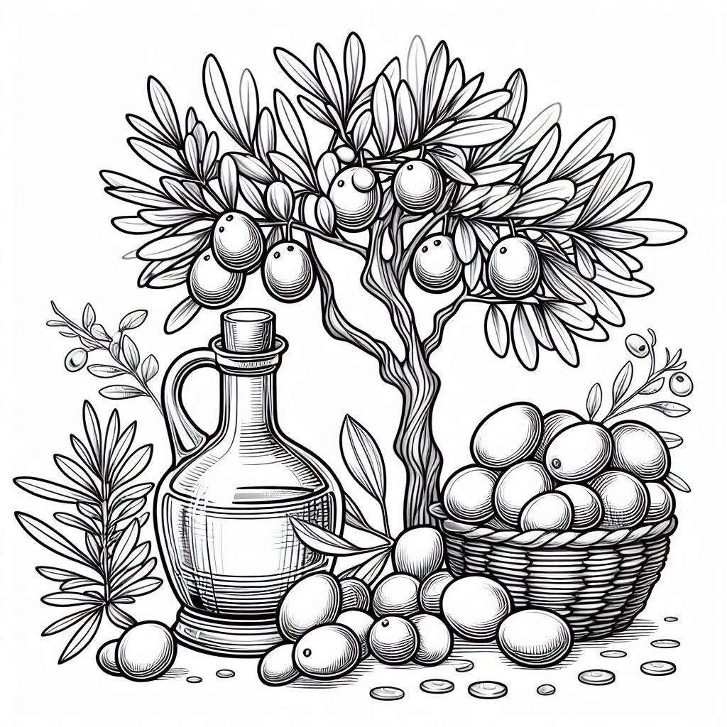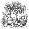 Olives and olive oil, coloring ebook, greyscale, for adults, 56 designs , digital product, instantly download