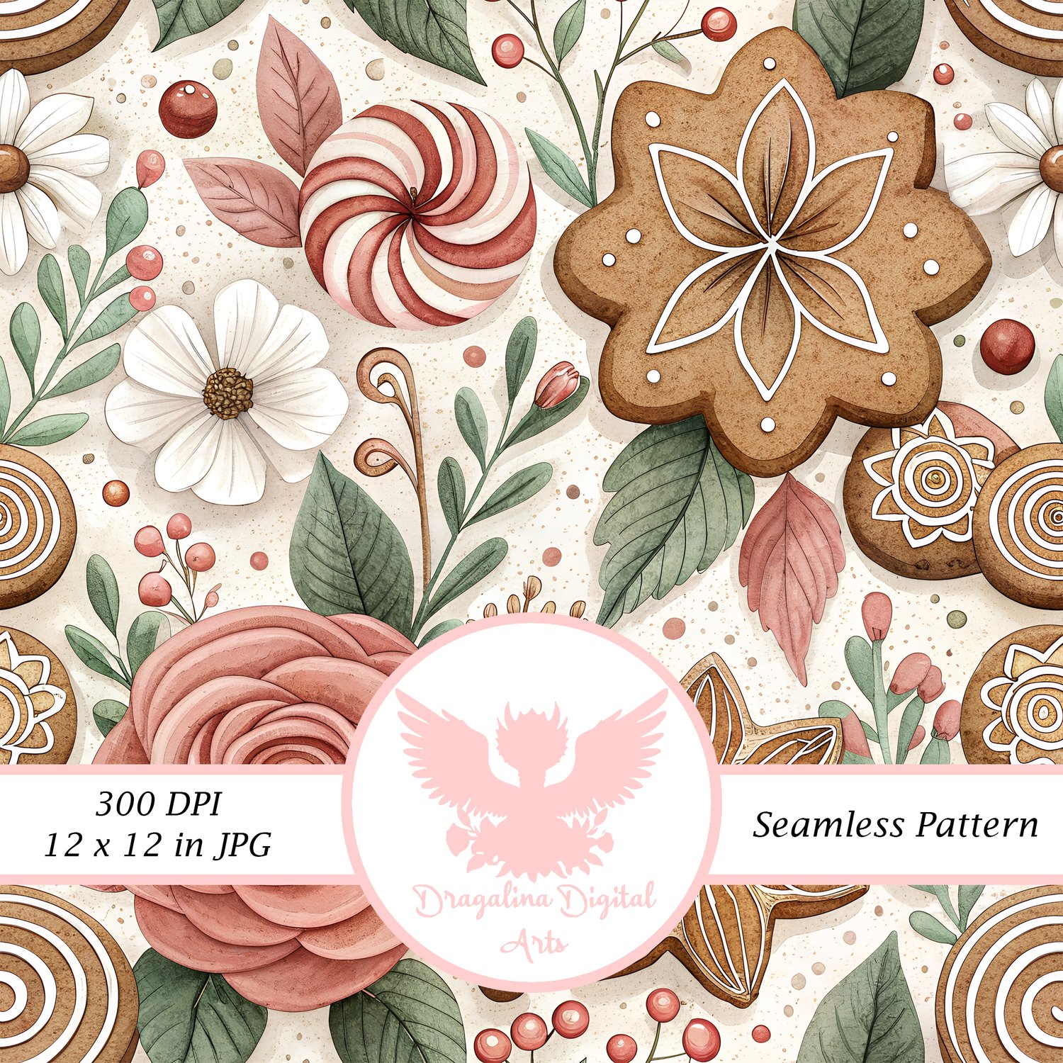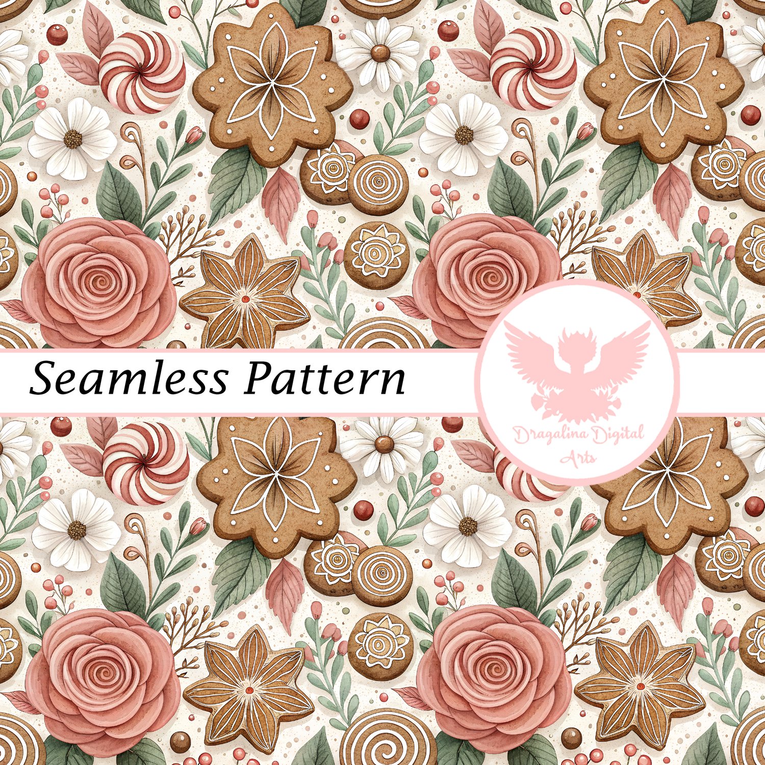 Gingerbread Floral Swirl Seamless Pattern